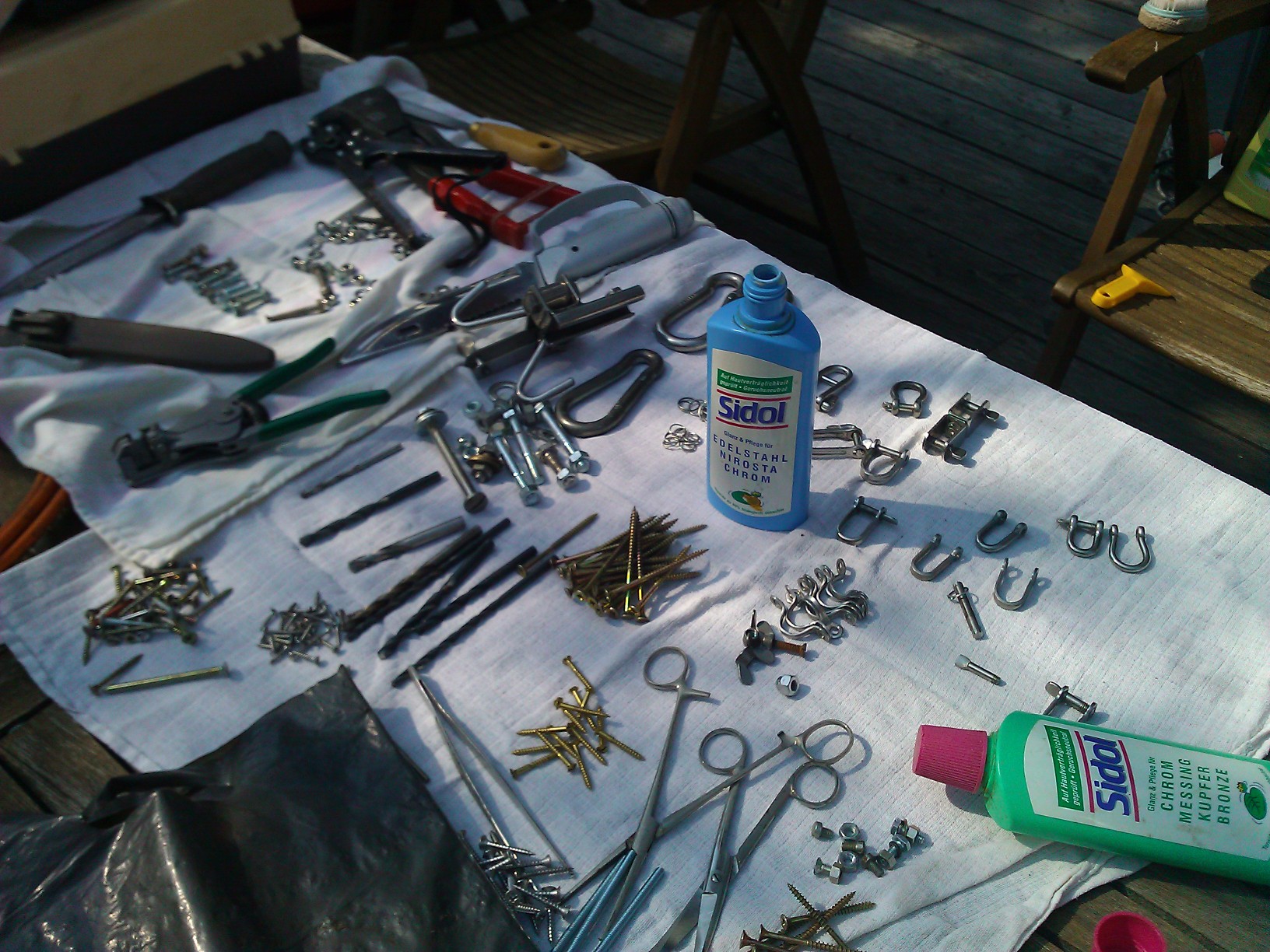 Wir haben unzählige Waschmaschinenladungen bewältigt, alte Sachen aussortiert, Schäkel geordnet, Werkzeugkisten gereinigt, umsortiert, dazwischen Leinen gewaschen, Bettzeug von der Sidonia gereinigt und vieles dem Müll zugeführt.