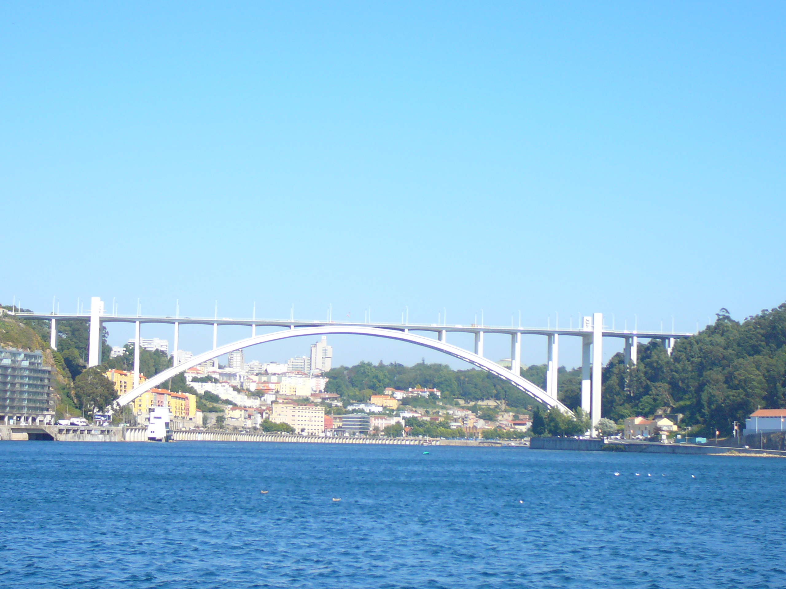 Die Marina selbst ist das erste Highlight. Modern, großzügig angelegt, mit sehr freundlichen MitarbeiterInnen, die ausgezeichnet englisch sprechen, schnellem Internet, „Gratis-Brötchen-Service“ in der Früh und einem großartigen Blick auf die Ponte de Arrabida. Wir haben noch dazu die besten Liegeplätze bekommen. Sozusagen, erste Reihe fußfrei mit barrierefreiem Blick auf den Fluss und die Brücke.
