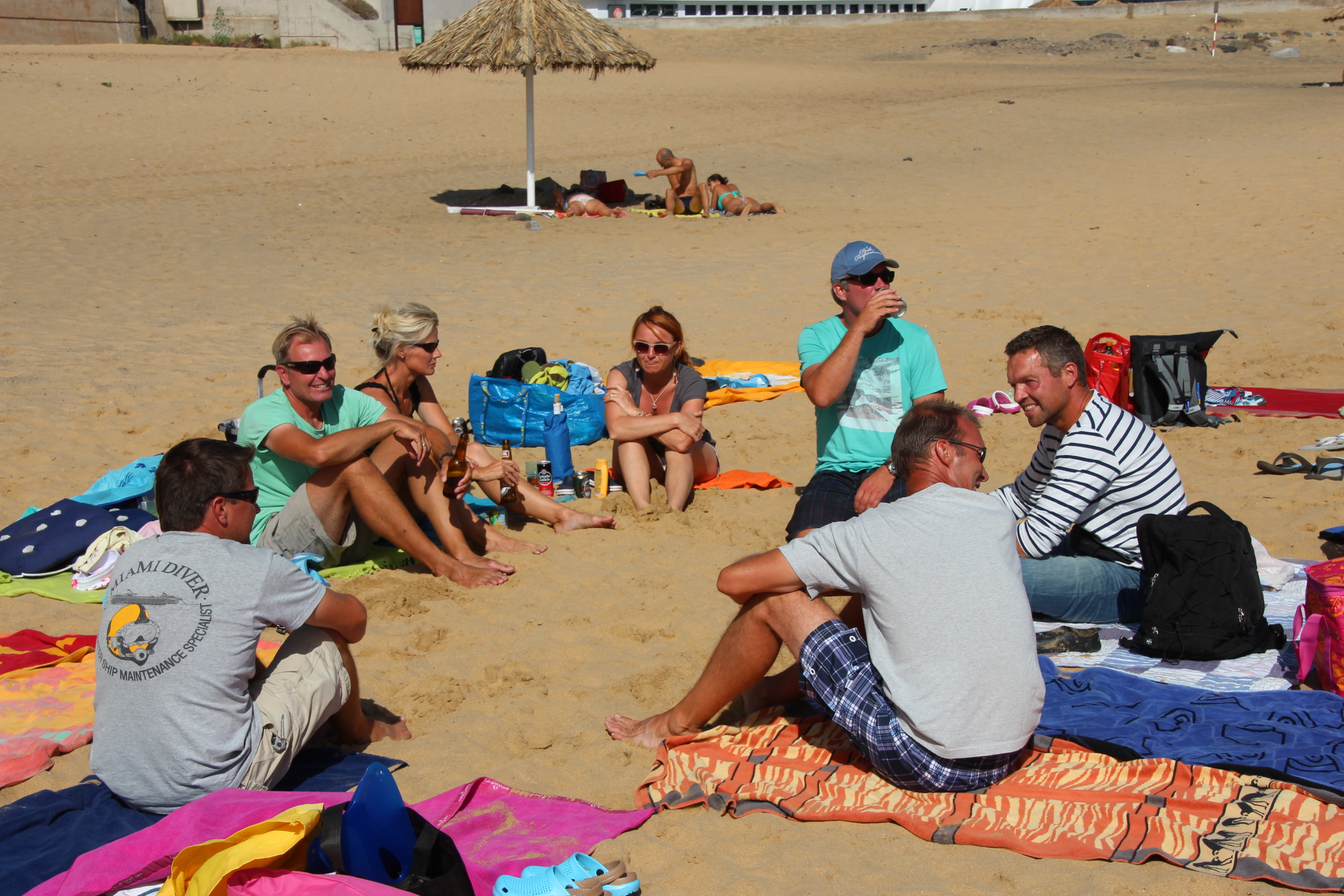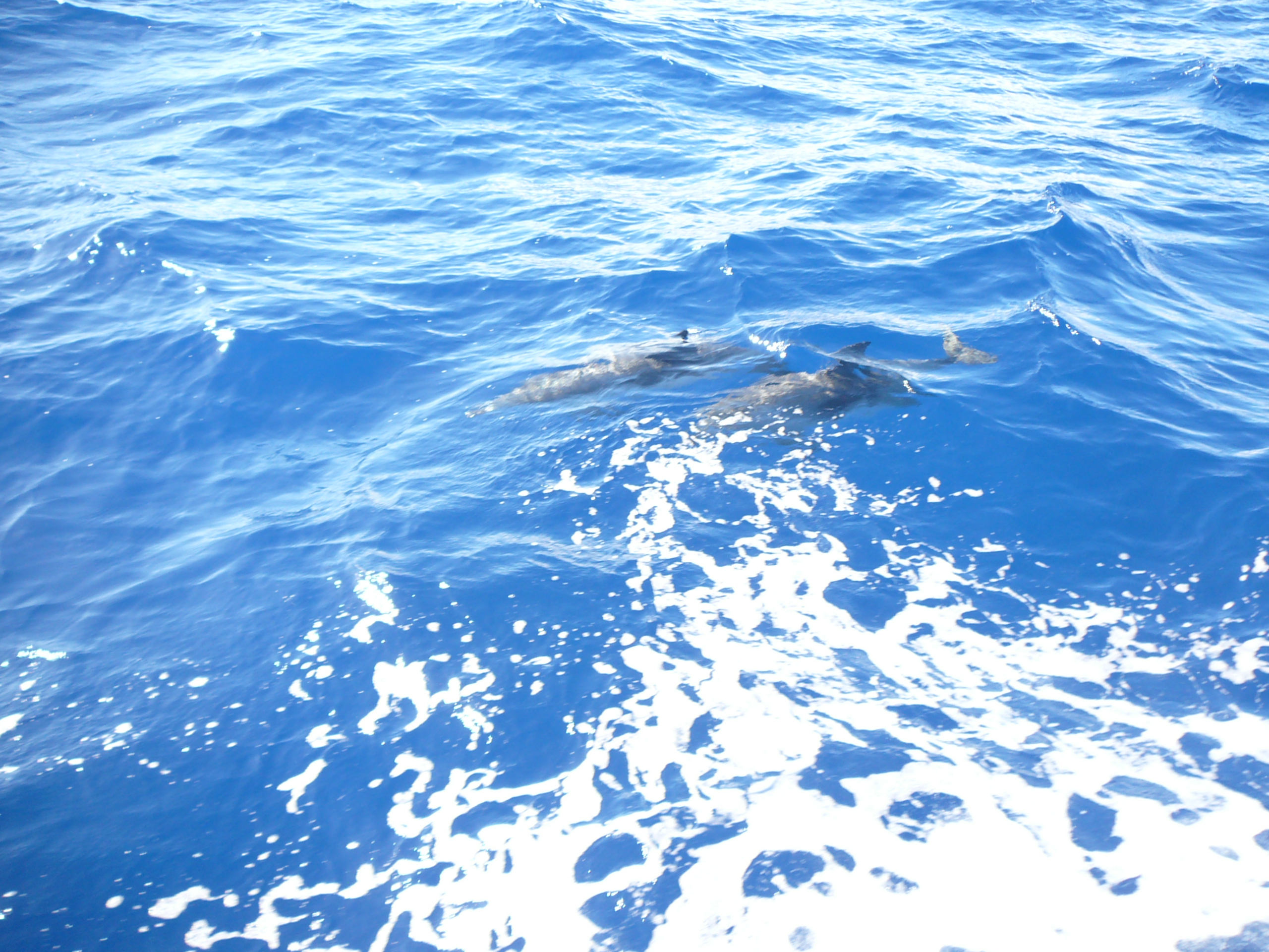 Gegen Mittag besucht uns zur Begrüßung eine Gruppe von Delfinen.