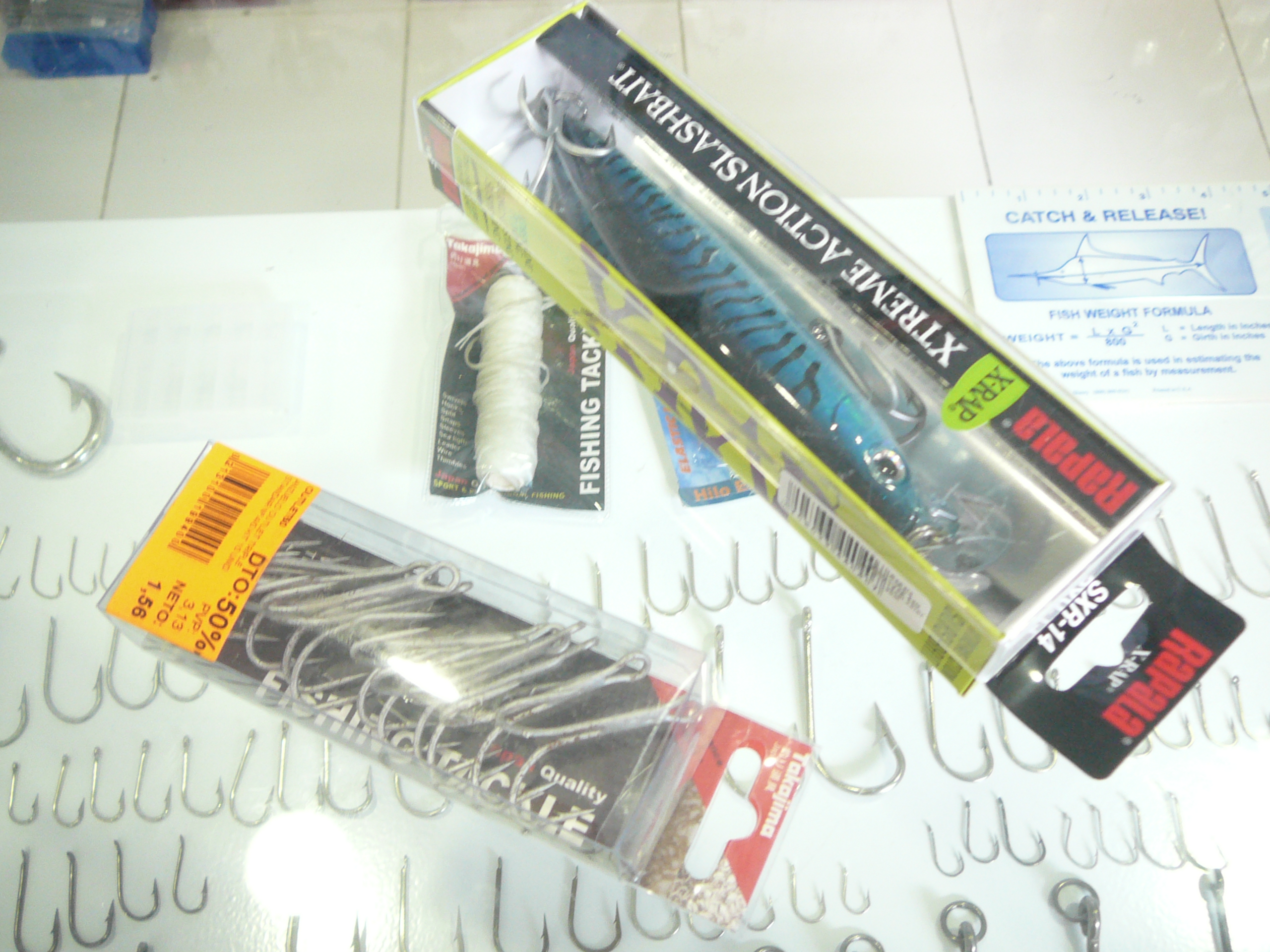 und natürlich ein entsprechendes Nylonseil – für bis zu 23 kg. Sicher ist sicher. Dazu noch einen zusätzlichen Köder fürs Fischen untertags (ein Köder mit Tauchflosse).