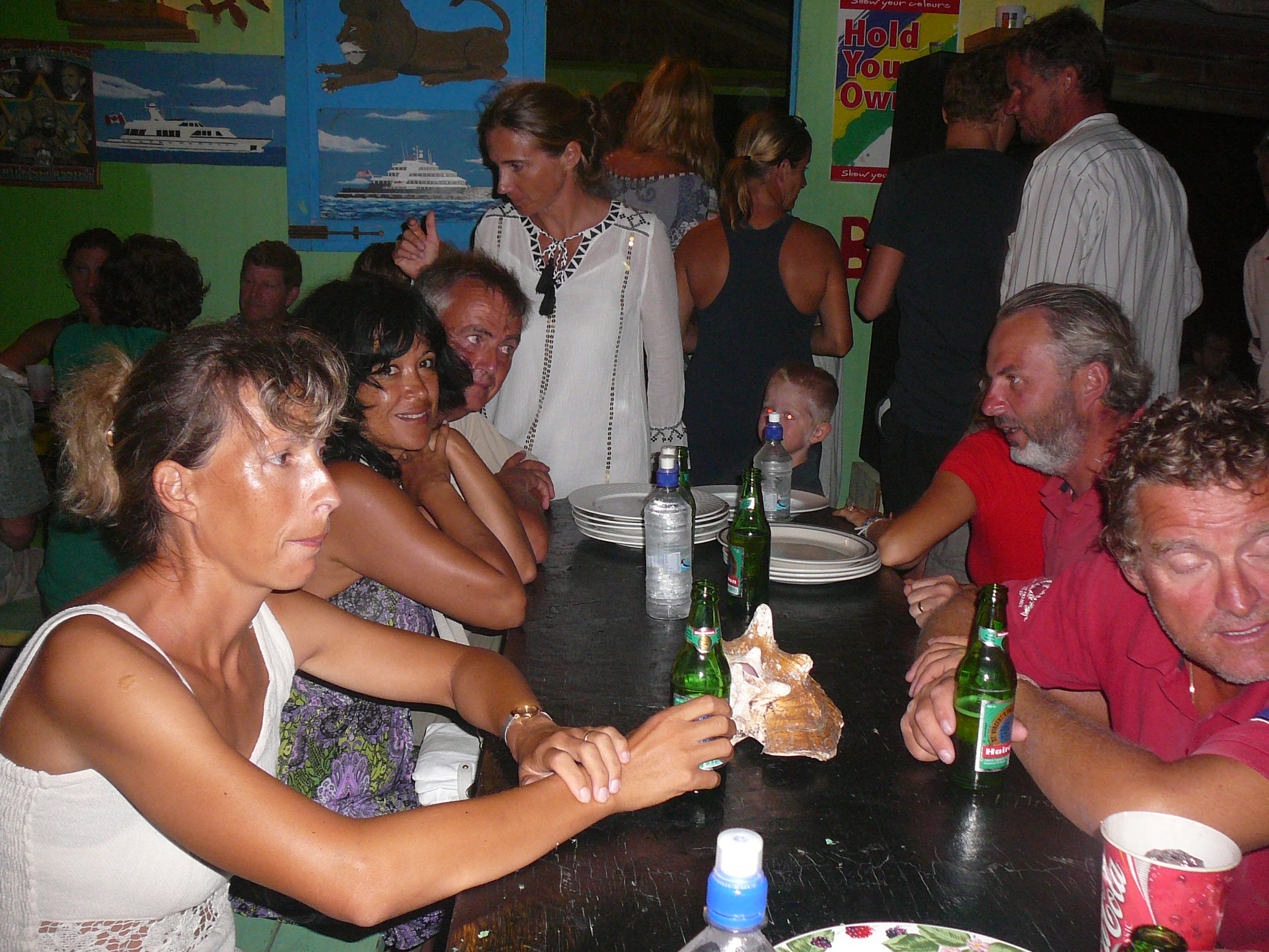 Die Beachparty startet um 19 Uhr. In einer kleinen Hütte werden Reis, Gemüse, Erdäpfel, Huhn, Fisch und Lobster für uns vorbereitet. Plastikteller, Porzellangeschirr, irgendwelche Becher, irgendein Besteck , aber es schmeckt super.