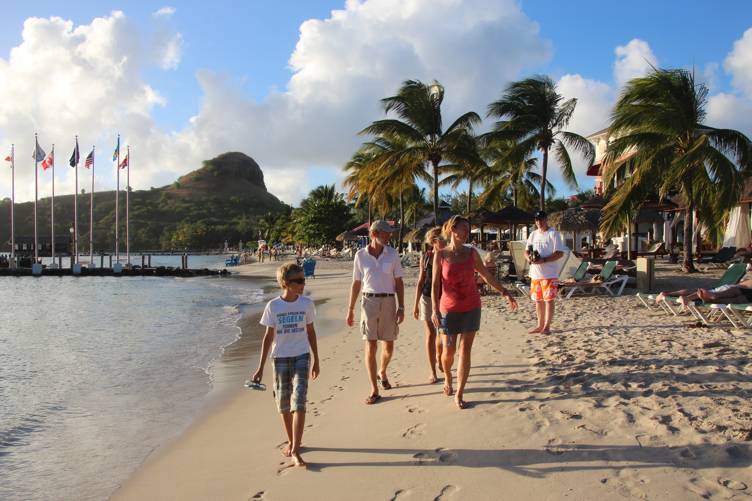 Zurück wandern wir den Strand entlang, vorbei an den Luxus-Resorts Sandals und Landings – eine ganz andere Welt.