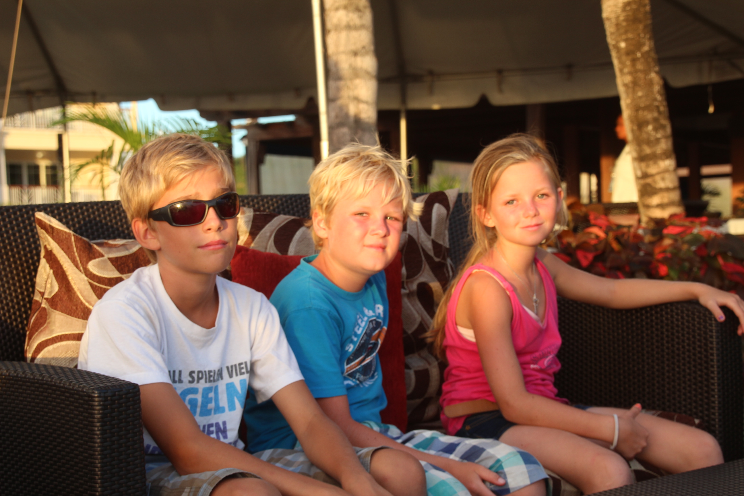 Und so landen wir mitten in der noblen Strandbar des Landings Resort, gerade als die Sonne untergehen möchte, und genehmigen uns „ausnahmsweise“ einen Sundowner der Luxusklasse. Milchshake oder Fruchtsmoothie und für die Erwachsenen Planters Punch, Landings Sunset und Erdbeer Daiquiri. Untermalt wird der traumhafte Sonnenuntergang von Jazzmusik.