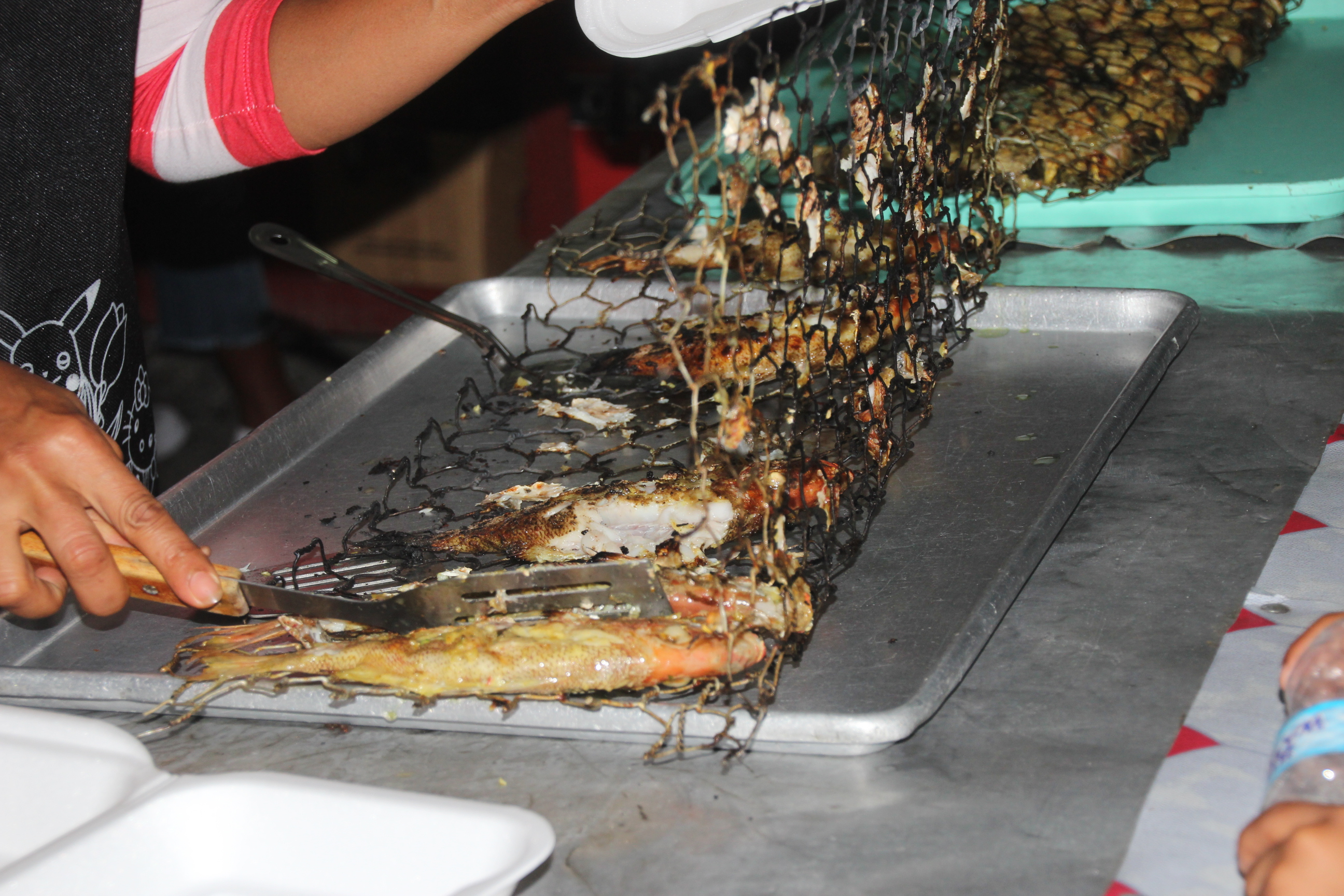 n Freitag Abend drei kleine Dorfstraßen abgesperrt und Einheimische grillen Fisch, Fleisch und bieten Drinks an. Wir finden gleich am Ortsrand die richtige Grillerei für uns – kaum ausländische Gäste, hauptsächlich Locals sitzen auf den Holzbänken und genießen Goldmakrele, Baracuda und Red Snapper. Wir auch. (Und außerdem lernen wir eine neue Verwendung für „MASCHENDRAHTZAUN“ kennen. Daran hat Stefan Raab sicher nicht gedacht).