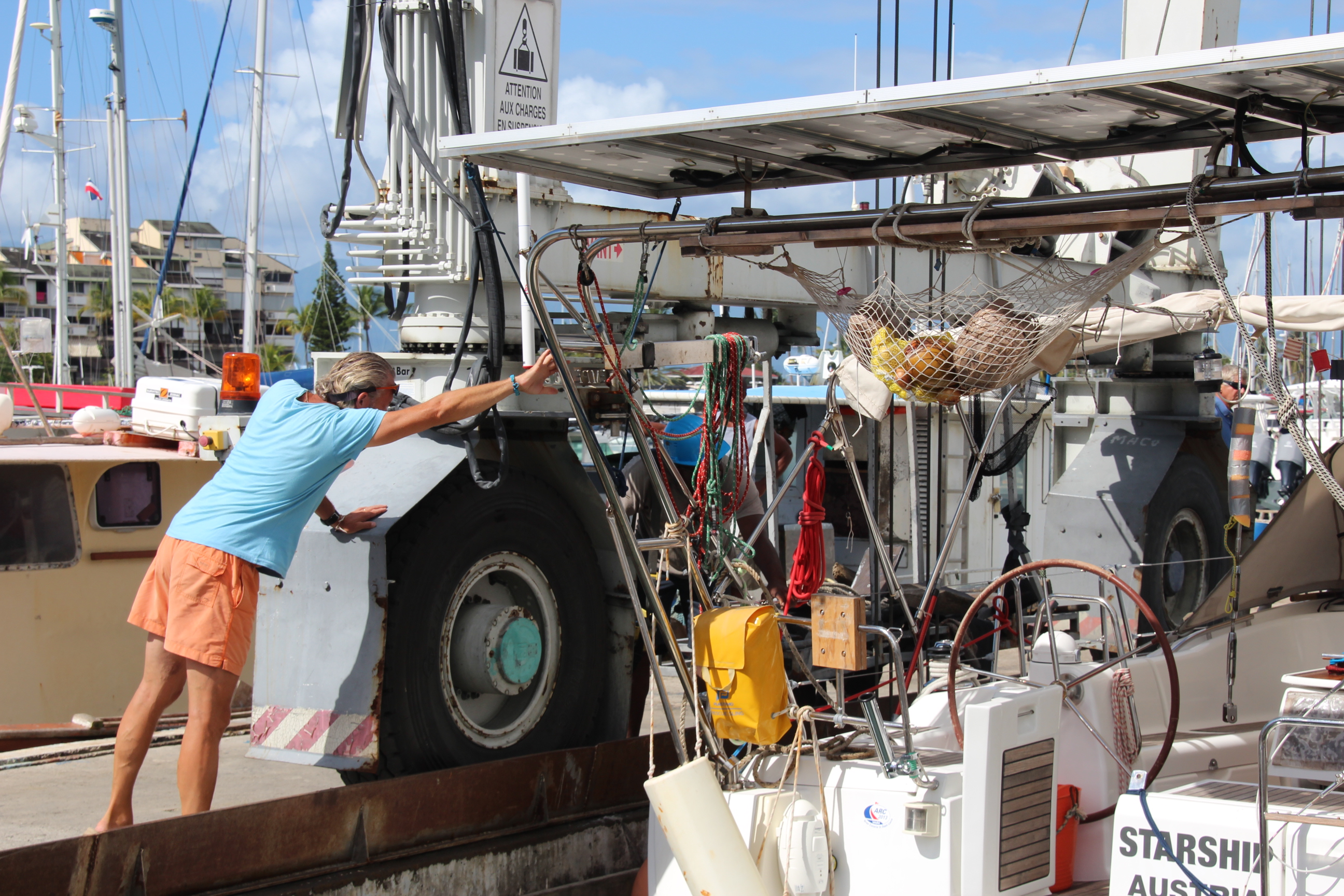 “Starship, this is Maris! We are friends of Antares. We are anchored in Pigeon Island. Come over! It is nice here!”