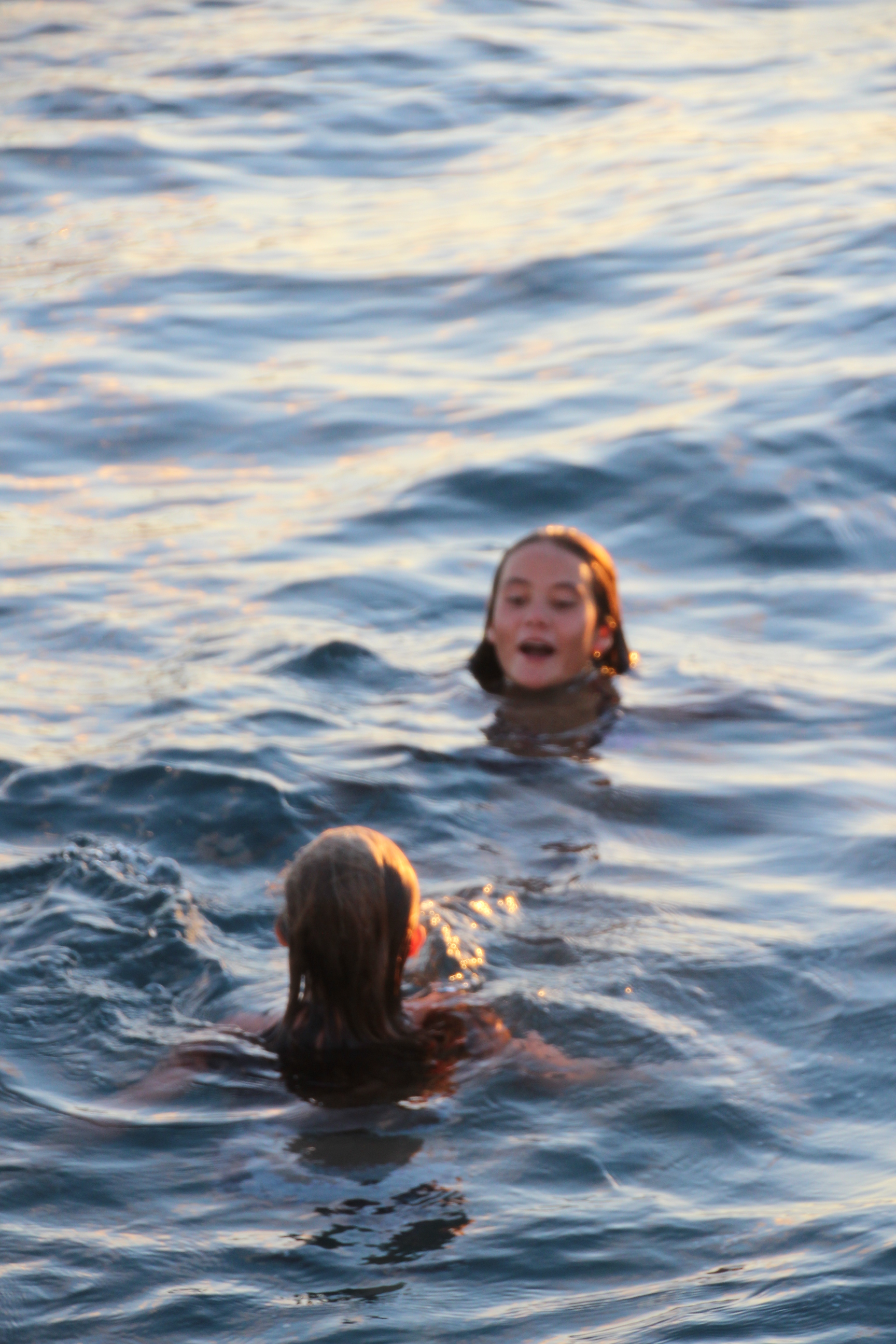 Und um 18:00 sitzen wir schon in unserem Cockpit und genießen einen großartigen Sundowner. Die Kinder schwimmen noch ein paar Runden und ziehen sich dann auf das Boot der Maris zurück.
