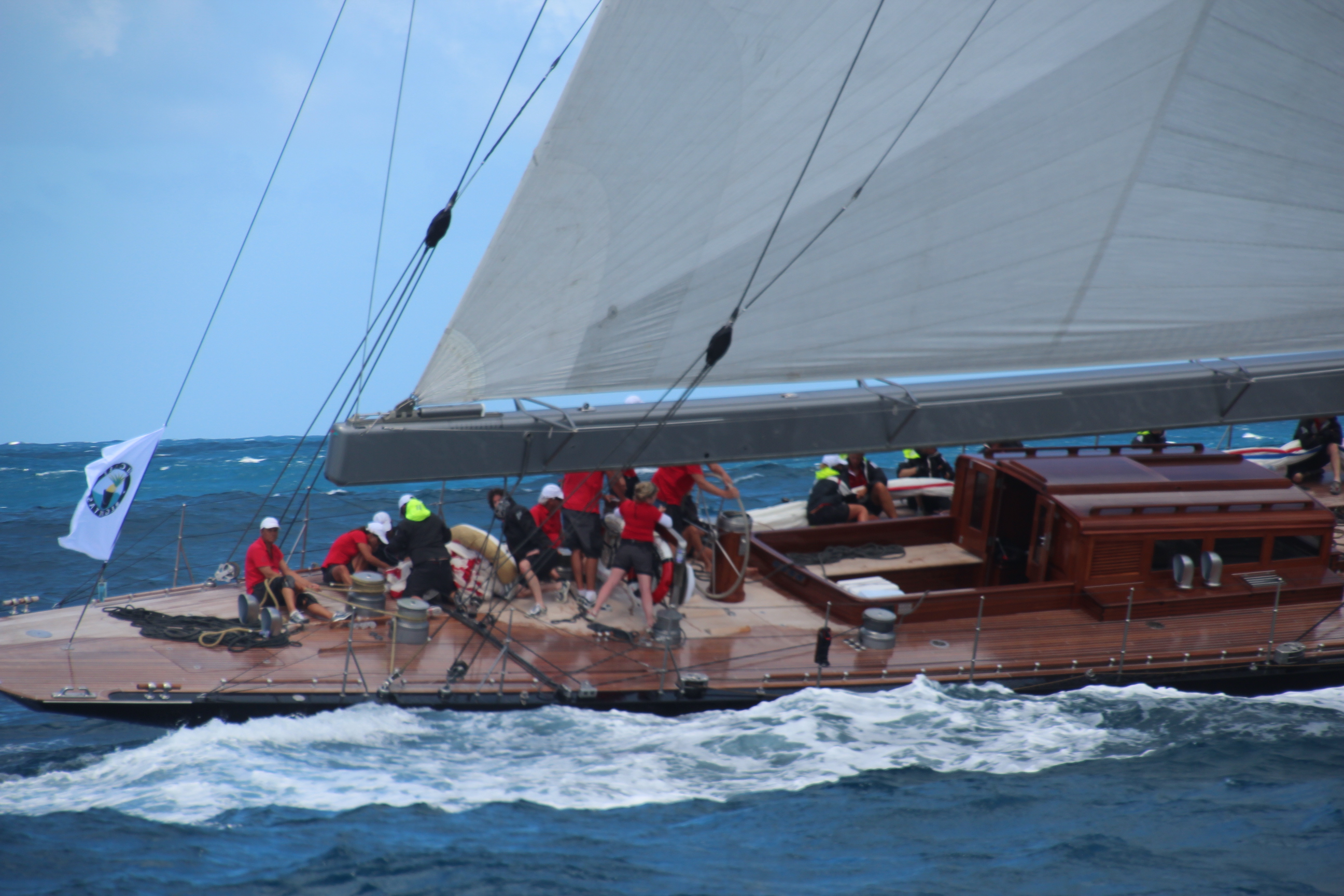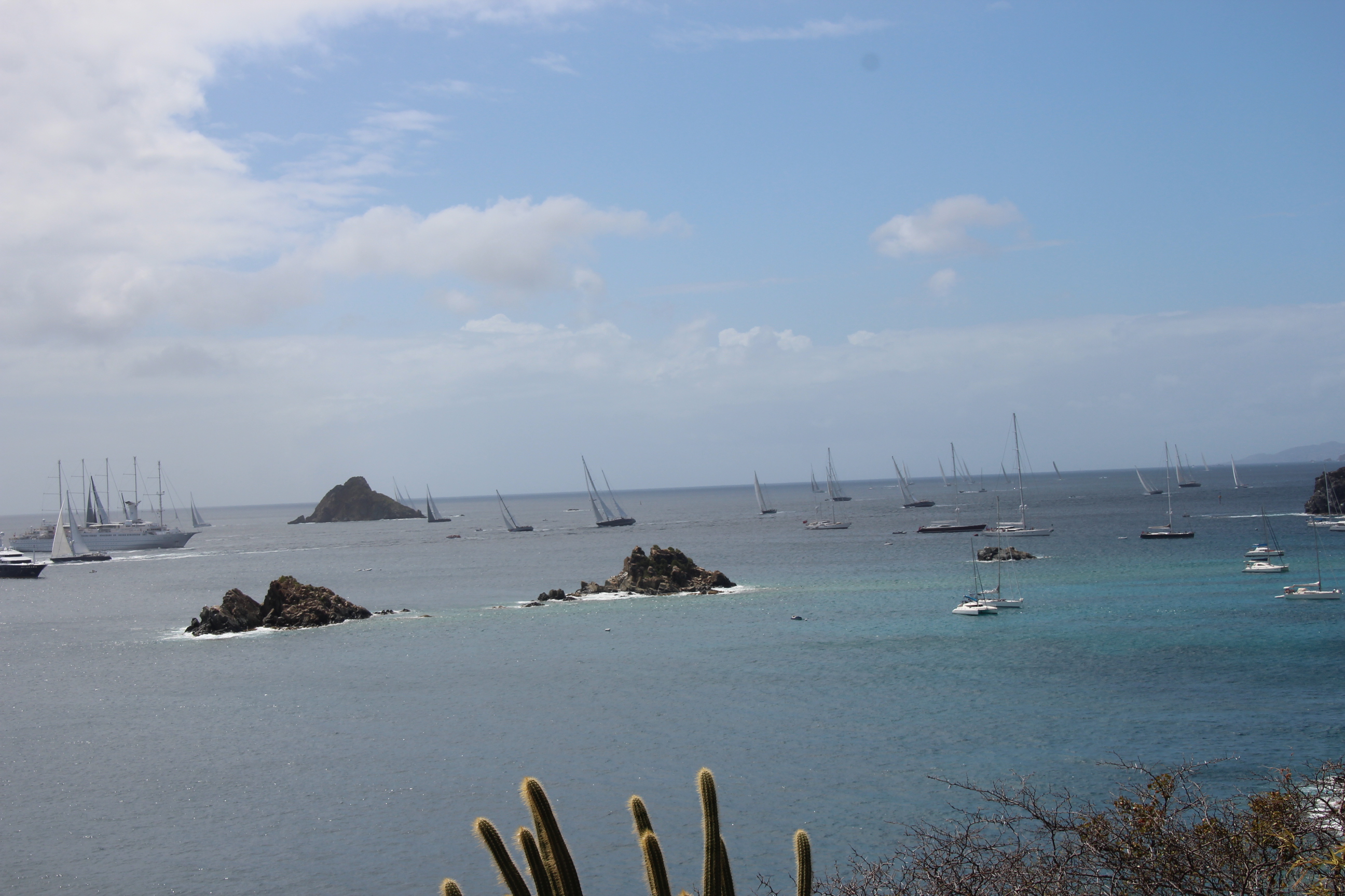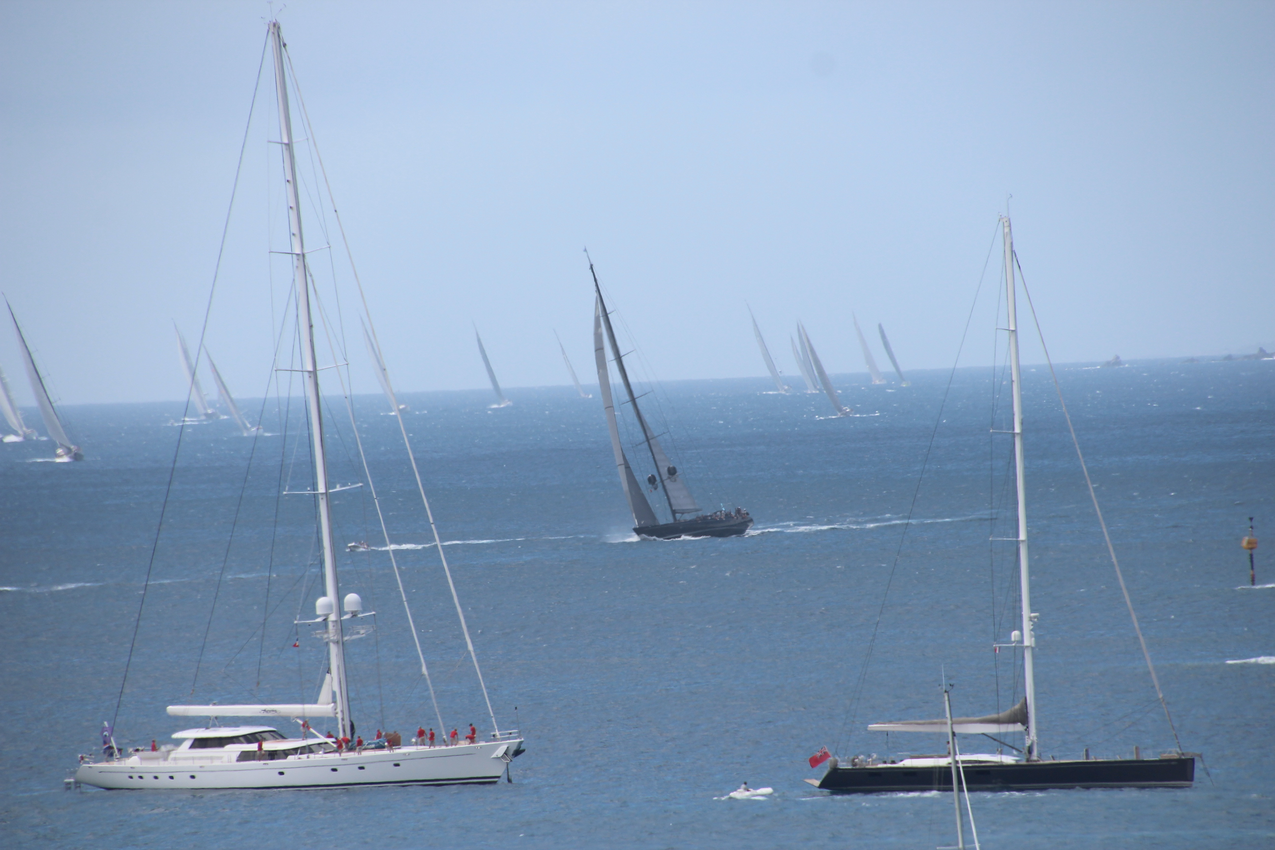 Vor St. Barth trainieren die wirklichen Superyachten für die am Freitag startende „St. Barths Bucket Regatta 2014“. Am liebsten würden wir einfach nur zusehen, wie diese Yachten majestätisch und doppelt so schnell an uns vorbeiziehen. Aber das geht natürlich nicht. Denn wir segeln ja mitten durchs Feld und müssen vielmehr aufpassen, keinem in die Quere zu kommen.