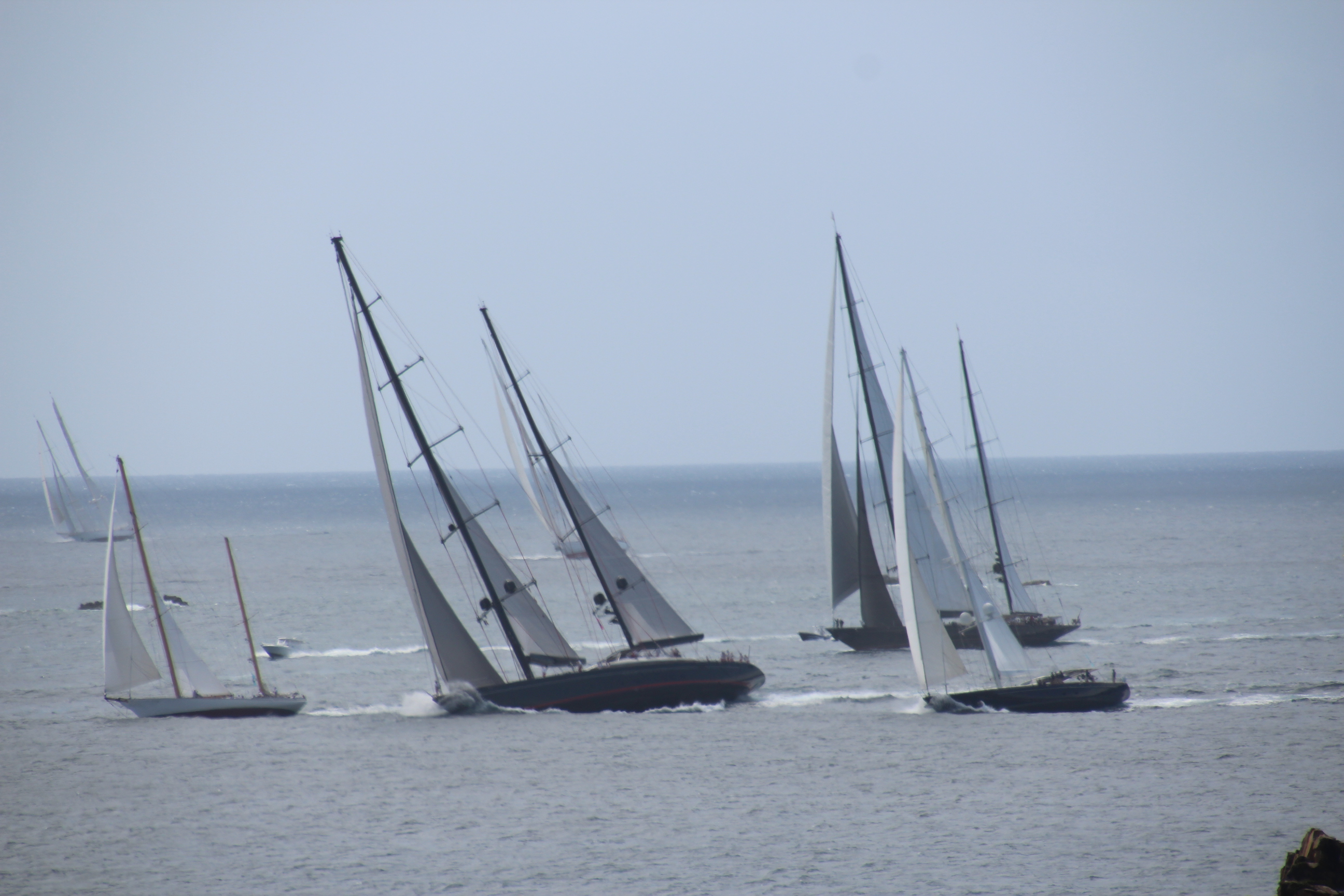 Die 27 m lange Yawl „BEQUIA“ (Kategorie: Les Mademoiselles des Mers“) liegt in Führung.