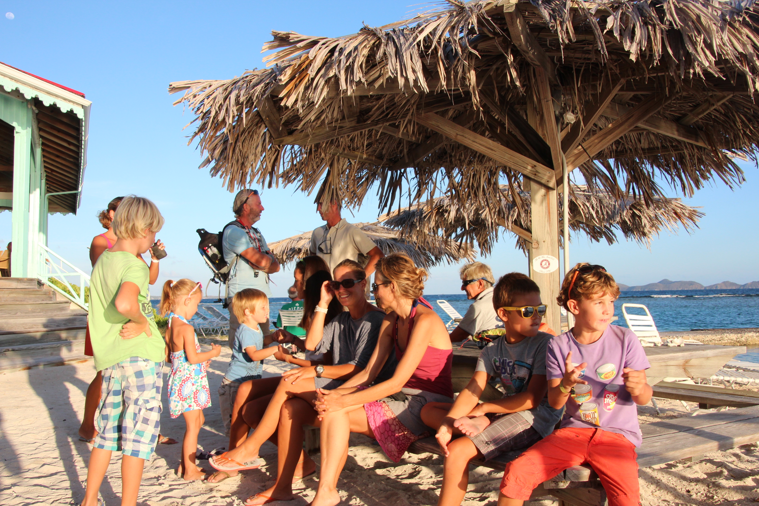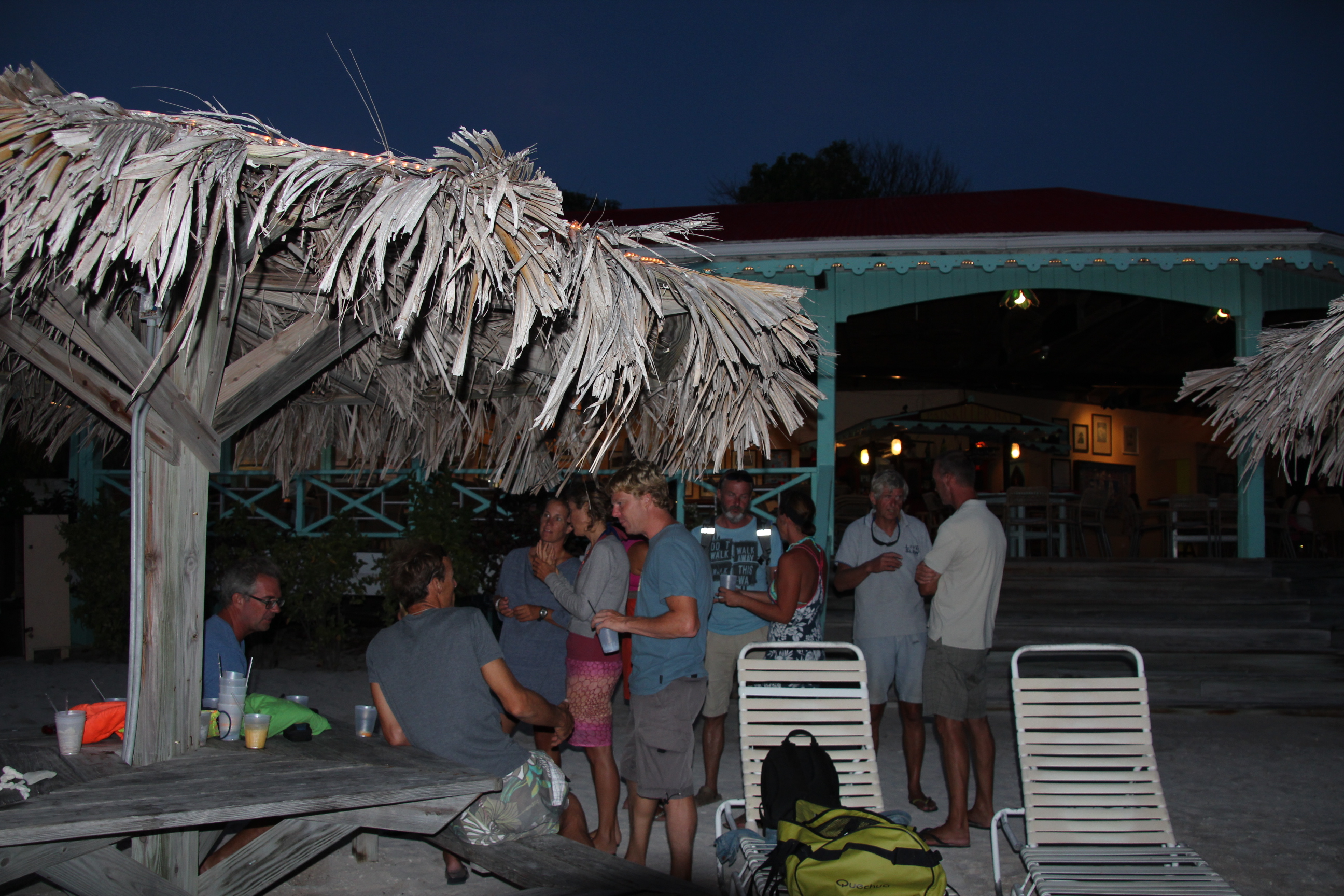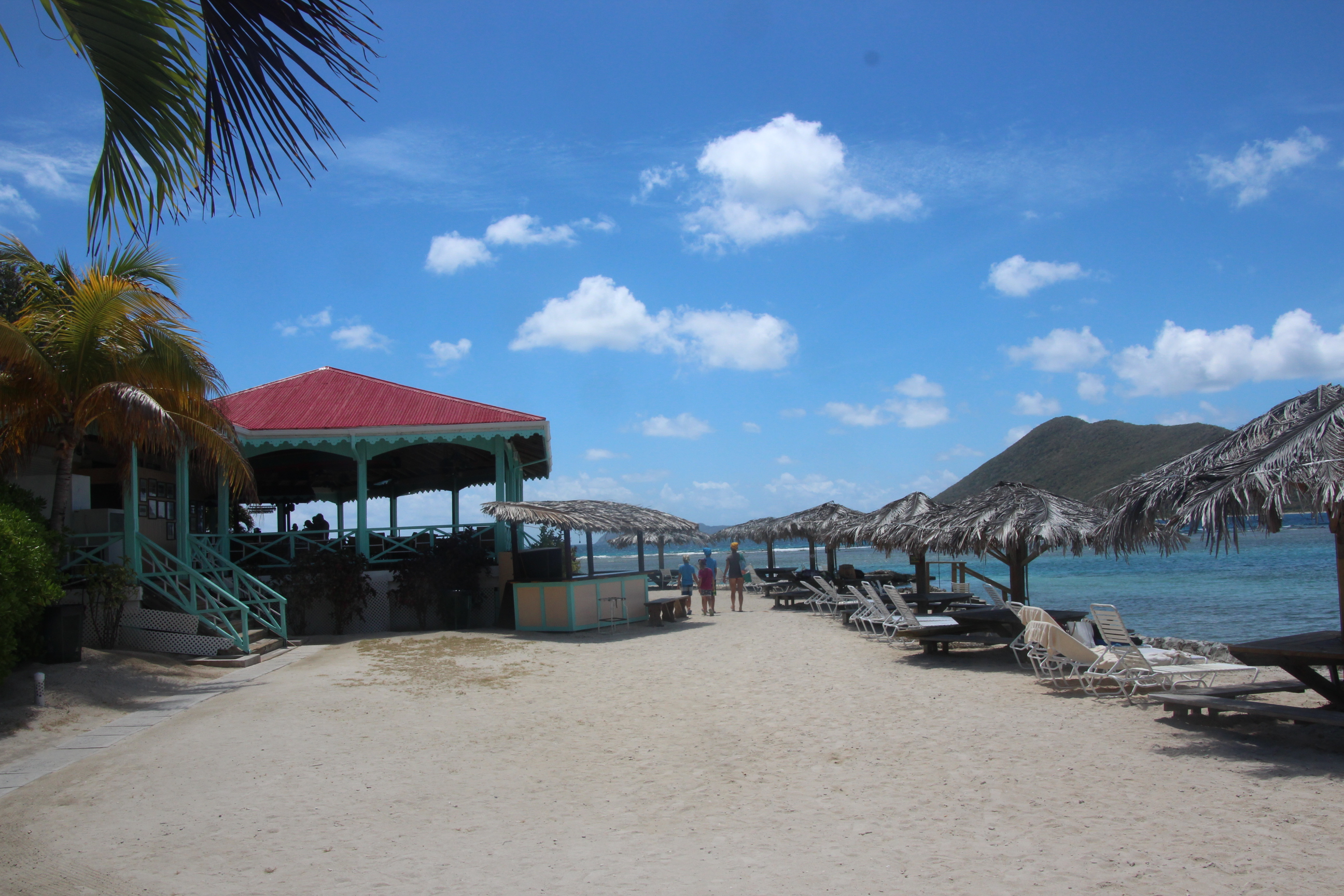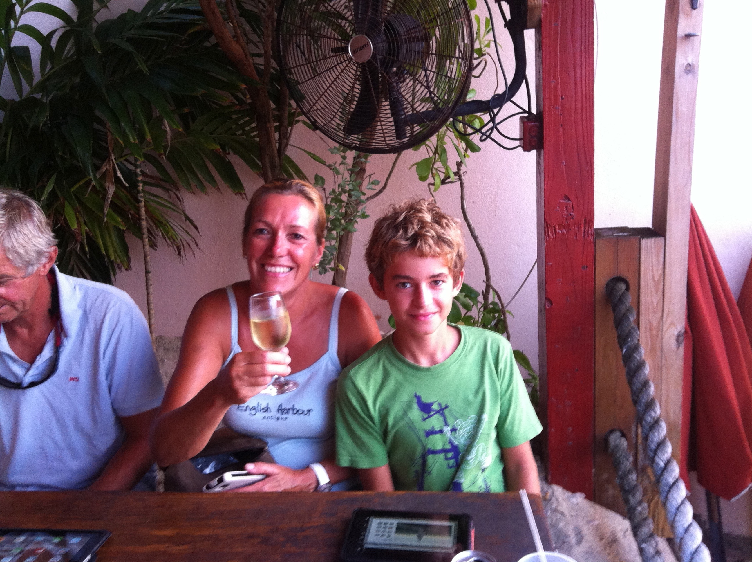 Beim Weg zurück in den Ort erreichen die ersten Jachten gerade wieder die Marina. Die Crew der siegreichen Bequia genießt ganz entspannt den Mittagslunch, während sich die Crew der 67 m langen Ketch „HETAIROS“ (Kategorie: „ Les Gazelles des Mers“), die vorzeitig aus dem Rennen ausgestiegen ist, sich um die Reparatur der Genua kümmert.
