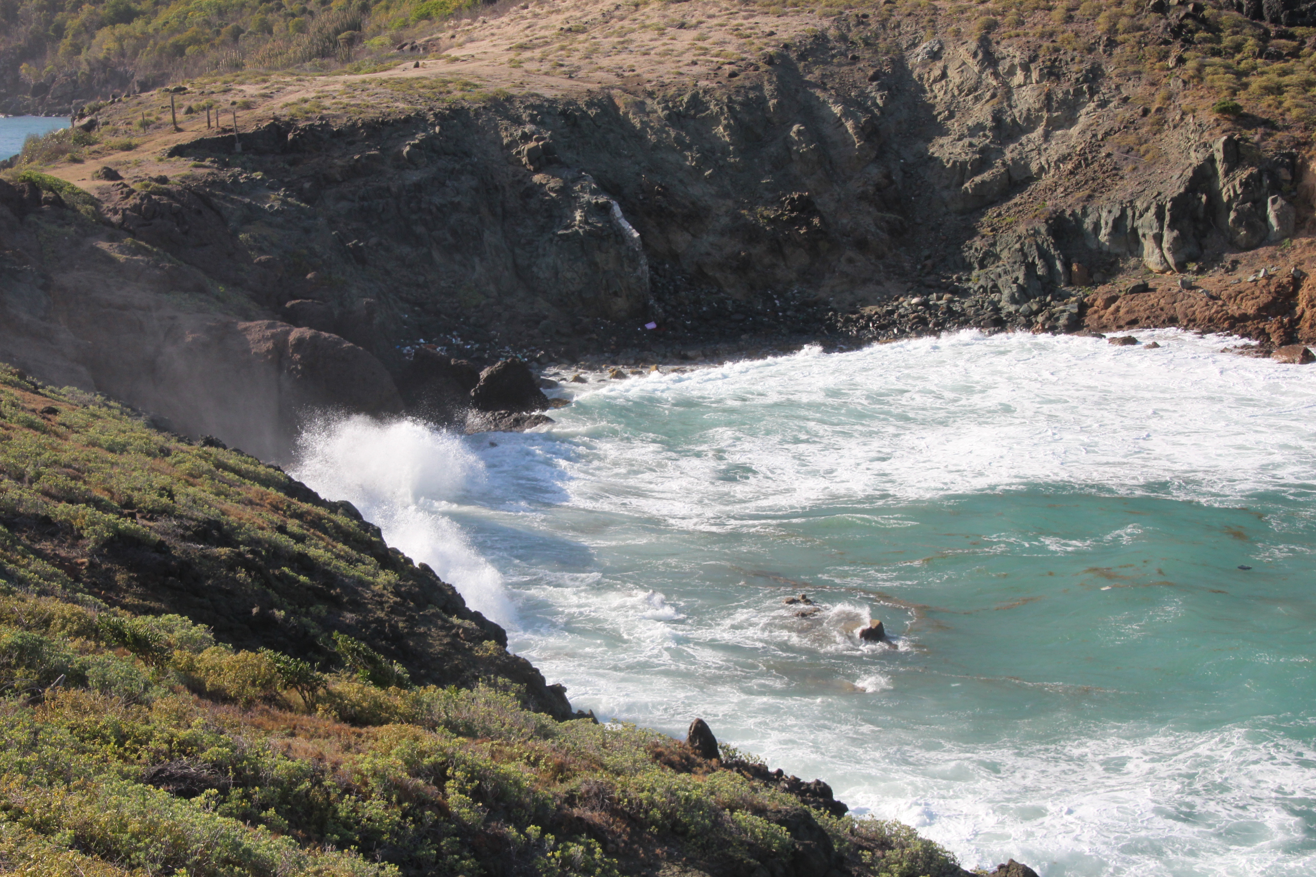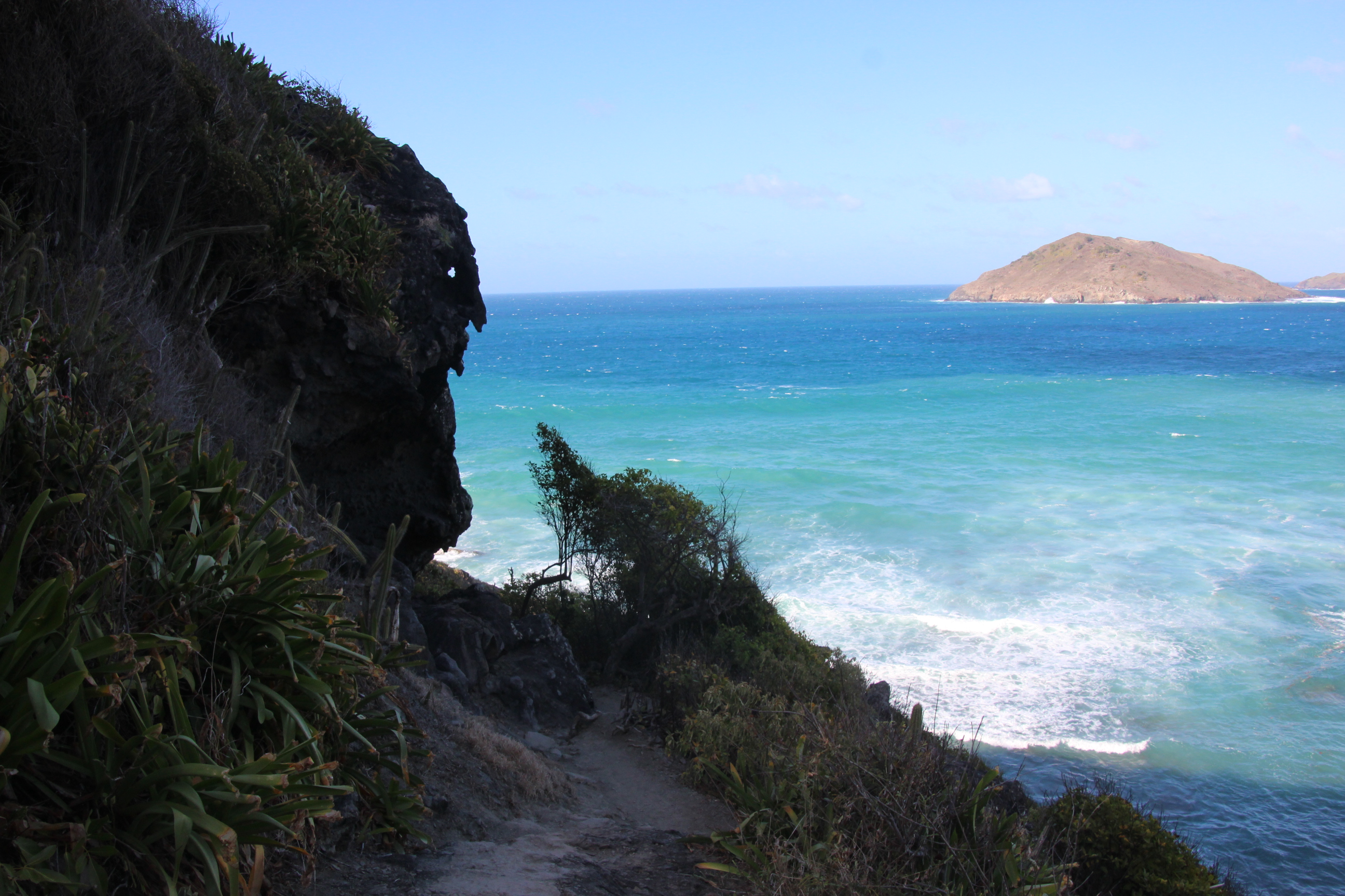 Also starten Aurora und wir am nächsten morgen die Landexpedition bis Gustavia. Ein schmaler Pfad führt uns entlang der Nordküste, vorbei an einigen Bucht bis zum kleinen Ort Anse de Flamandes.