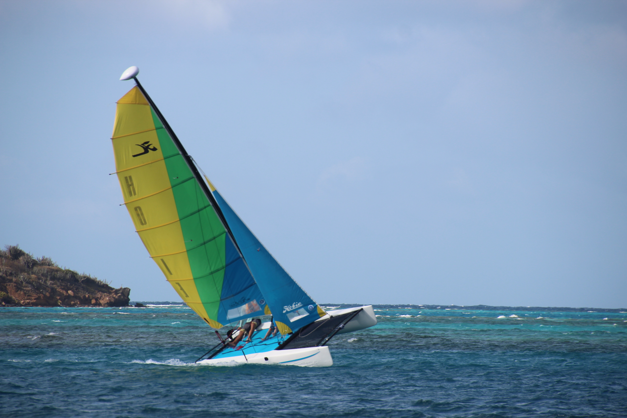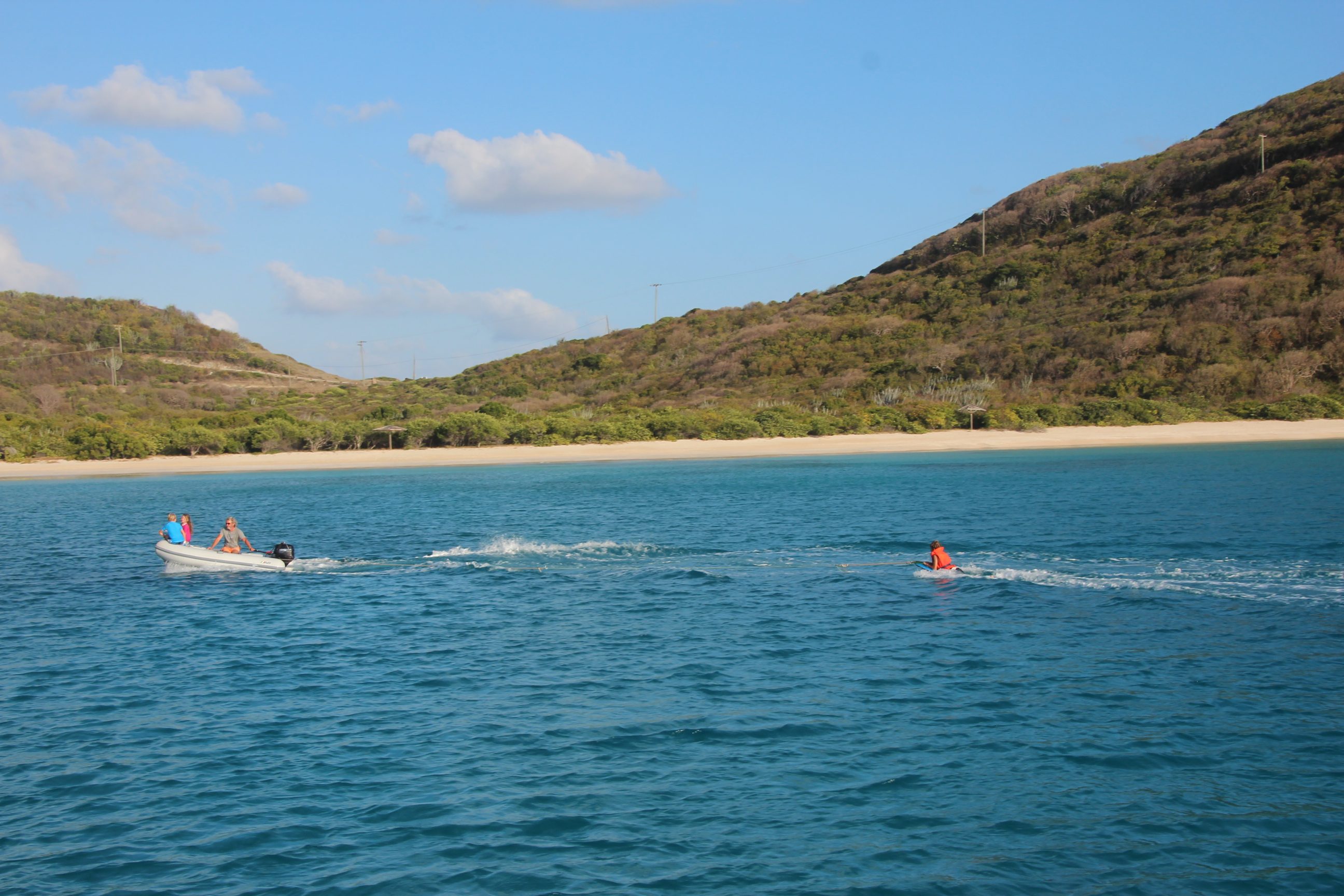 Sonne, 15-17 Kn Wind und wenig Welle von der Seite ergeben 7 bis 8 kn Speed over Ground. Dietmar und ich tun aber auch jede Menge dafür. Ständig trimmen wir ein wenig mehr. Und es zahlt sich aus: Für die 53 Seemeilen bis St. Barth brauchen wir 7 ½ Stunden. Wow, wow, wow, wir fühlen uns fast schon wie Racer.