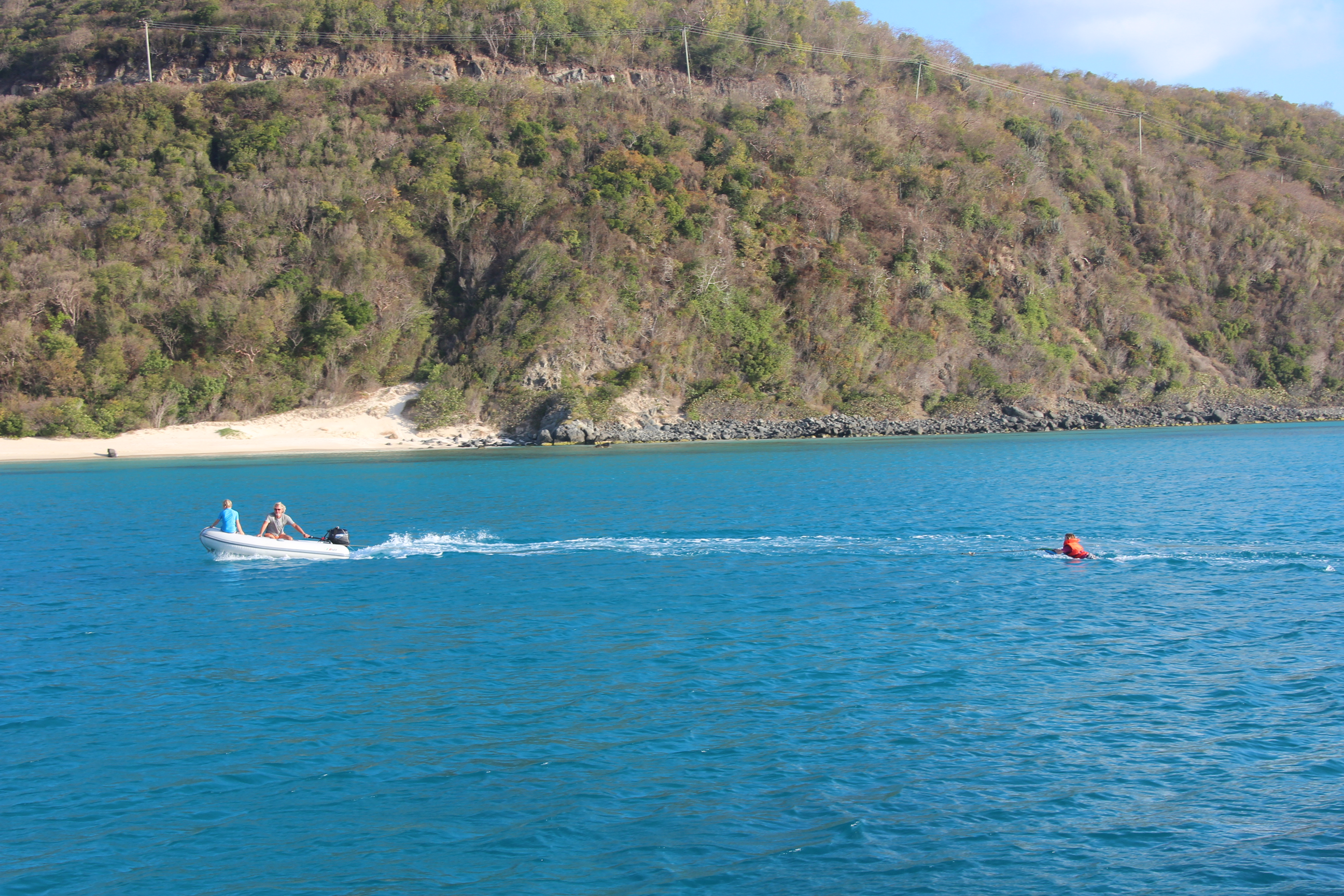 Aus Sorge im überfüllten Gustavia keinen Ankerplatz zu bekommen, segeln wir eine Bucht weiter und erwischen eine gerade frei werdende Mooring in der Bay de Colombier. Wunderschöne Bucht, einziger Nachteil: mit dem Dinghi ist die Strecke bis Gustavia nicht zu schaffen.