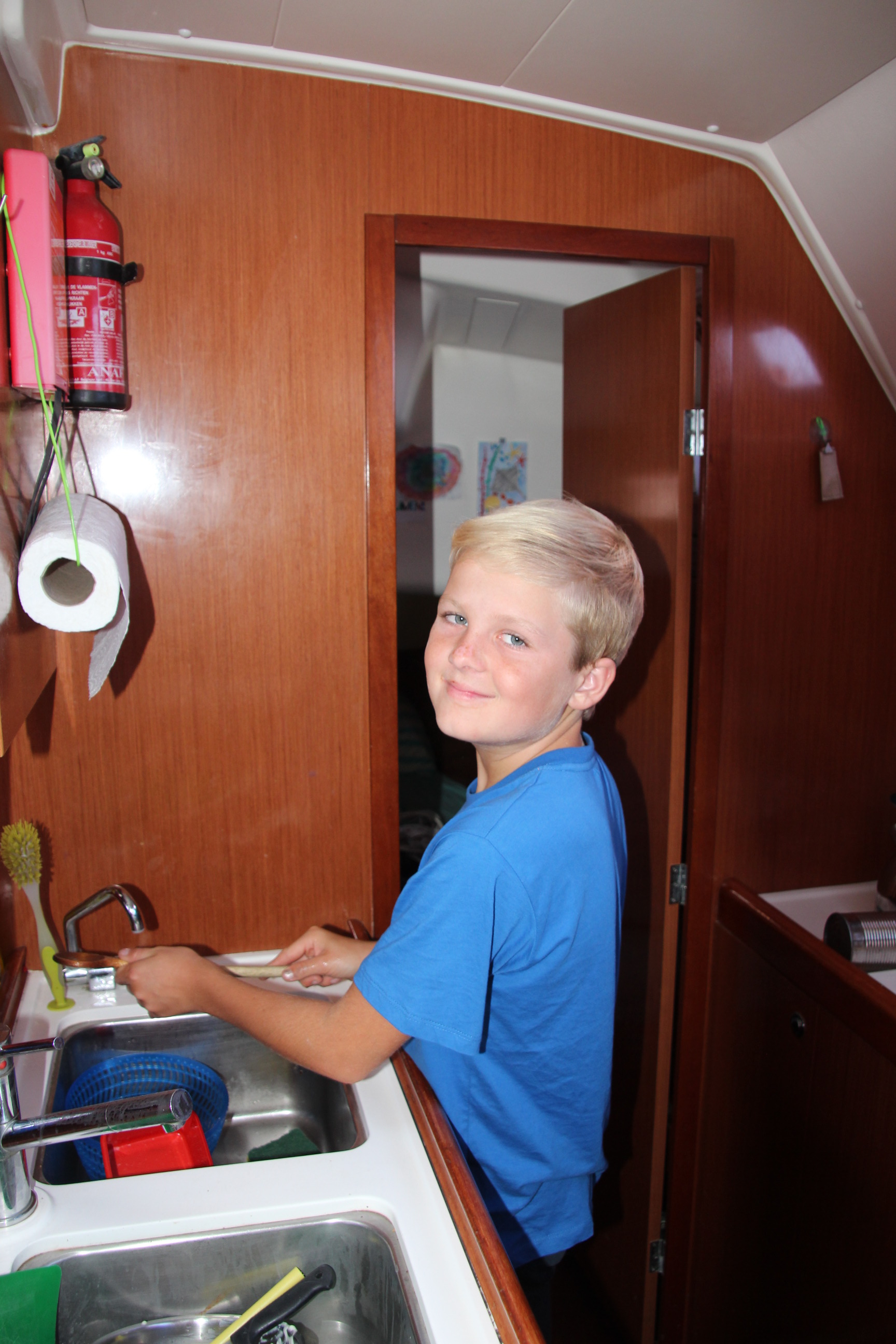 19:00 = Zum Abendessen gibt es Veggie-Chili. Lukas erbarmt sich und erledigt den Abwasch.