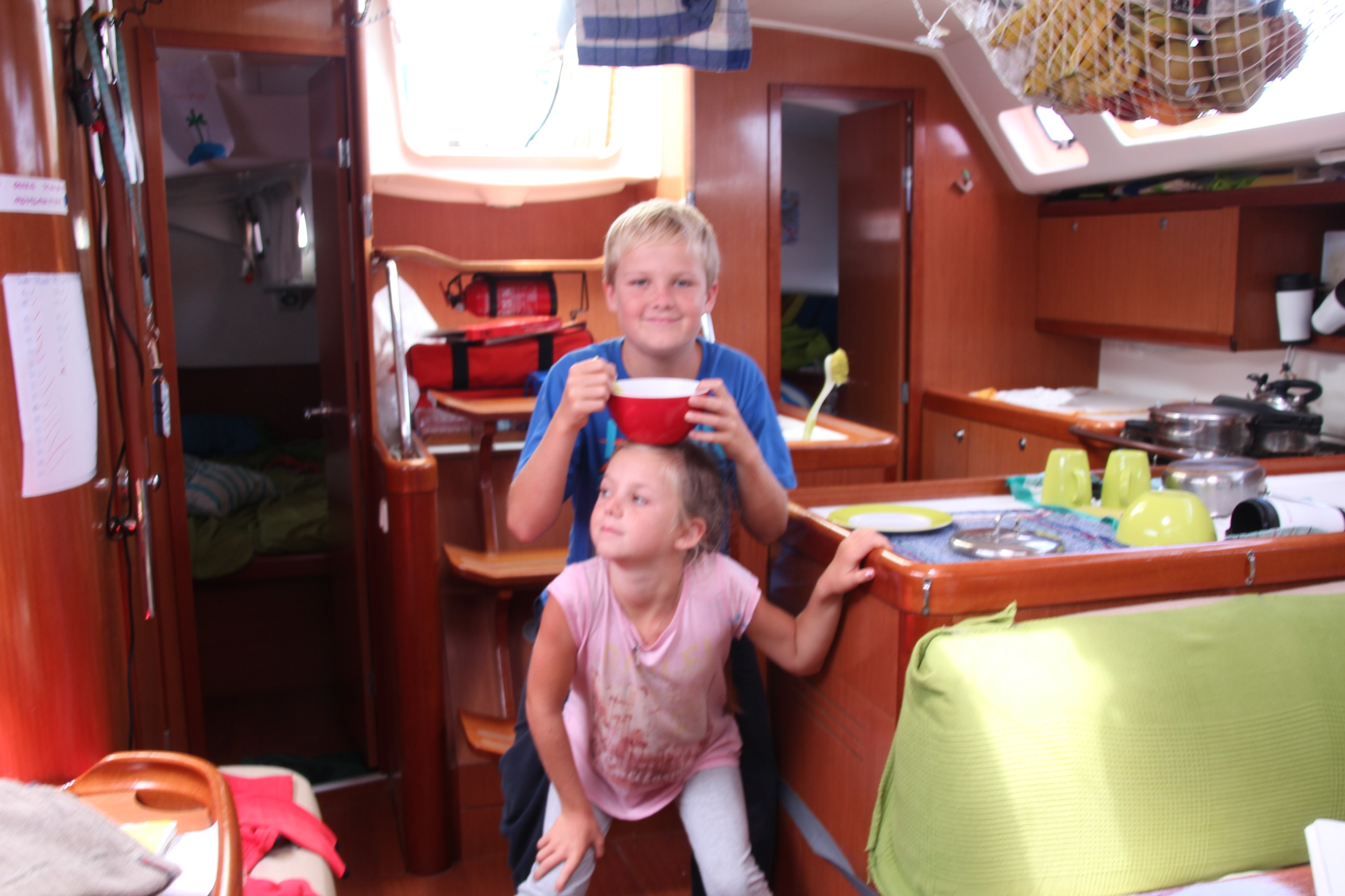 12:00 = Eine Mischung aus spätem Frühstück und frühem Mittagessen. Auf See kommt der Tagesablauf der Kinder manchmal durch einander.