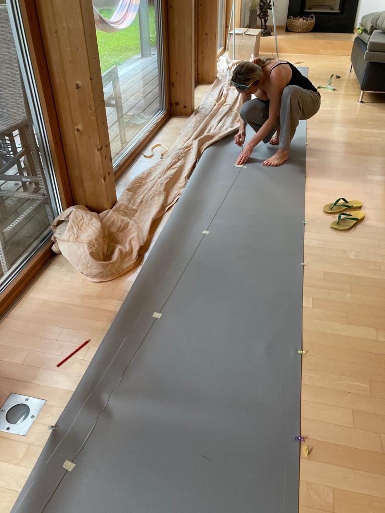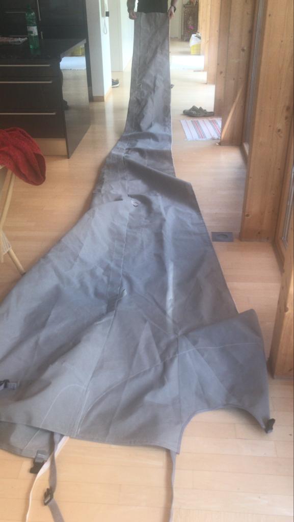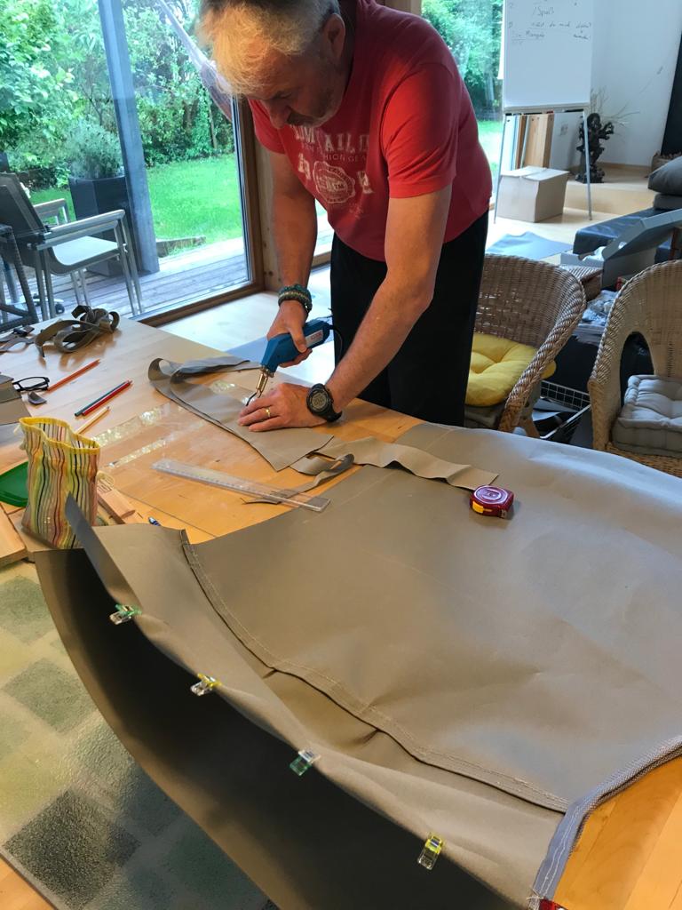 Das Bimini bekommt eine neue Persenning. Eine relativ einfache Aufgabe.