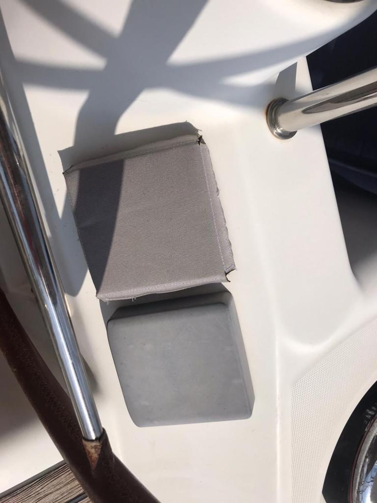 PROBLEM: Die seitlichen Befestigungen der selbstgenähten Sprayhood haben das Winterlager nicht überstanden und reißen beim bloßen Anblick. Was soll ich sagen: Das Material haben wir nicht bei SAILRITE, sondern irgendwo bestellt. Offensichtliche ohne auf wirkliche Marinetauglichkeit zu achten.