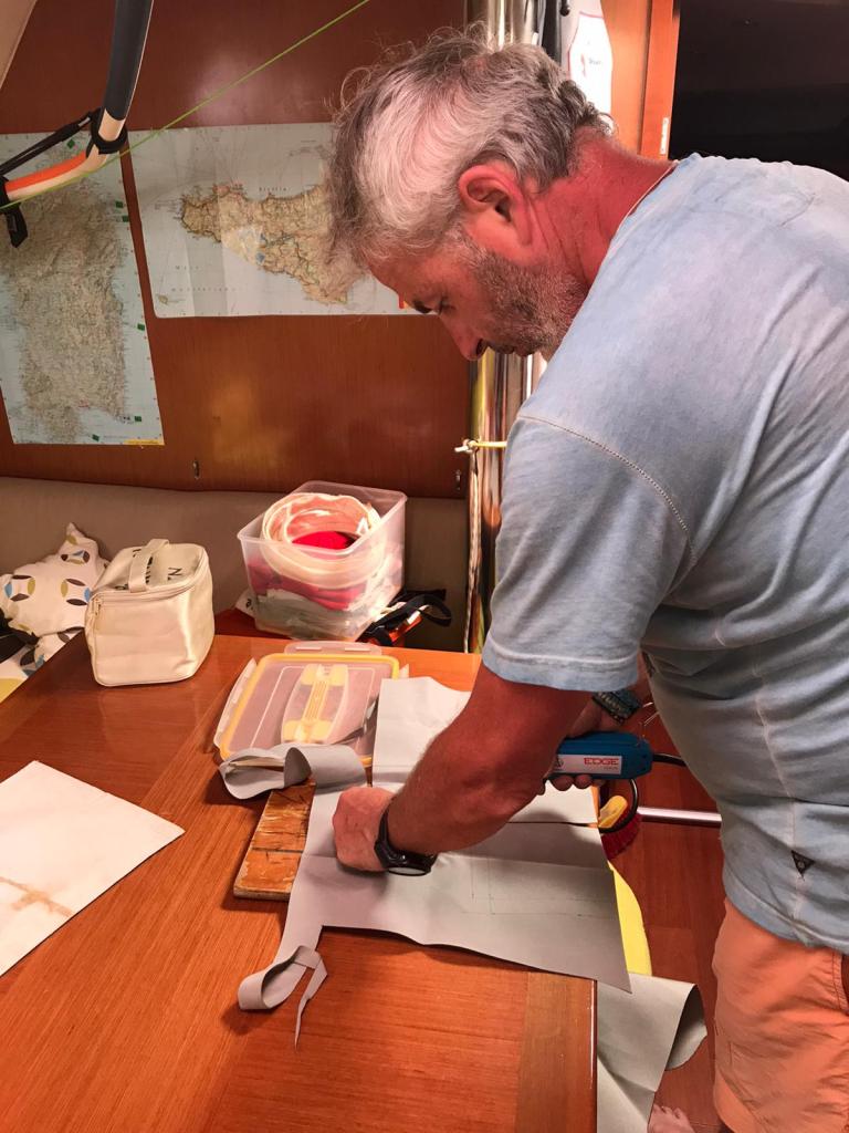 LÖSUNG I: „Russische“ Improvisation – Dietmar bindet ein Seil um den Mast, das das Ausrauschen der Mastrutscher verhindert.