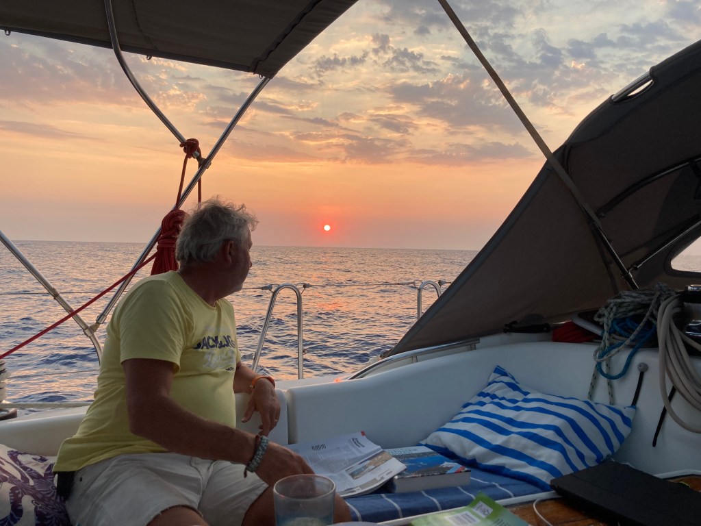 Gegen 19 Uhr dreht der Wind so ungünstig, dass wir nicht mehr segeln können, aber die Wellen uns hin und her schaukeln.