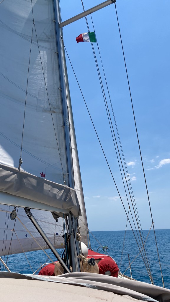Gegen 18.00 Uhr am Capo Passero, dem Absprungort nach Griechenland angekommen, klagt Traude über Übelkeit. Oh nein, was nun? Kurzerhand disponieren wir um. Nur 25 Meilen entfernt liegt Siracusa. Ein Ort, wo wir jederzeit auf Sand den Anker fallen lassen können. Das sind 5 Stunden bei Wellengang unter Motor, den Zwischenstopp müssen wir einlegen, um zu klären, ob Traude die Übelkeit in Griff bekommt. Um Mitternacht fällt der Anker und wir ins Bett. Erste Etappe geschafft.