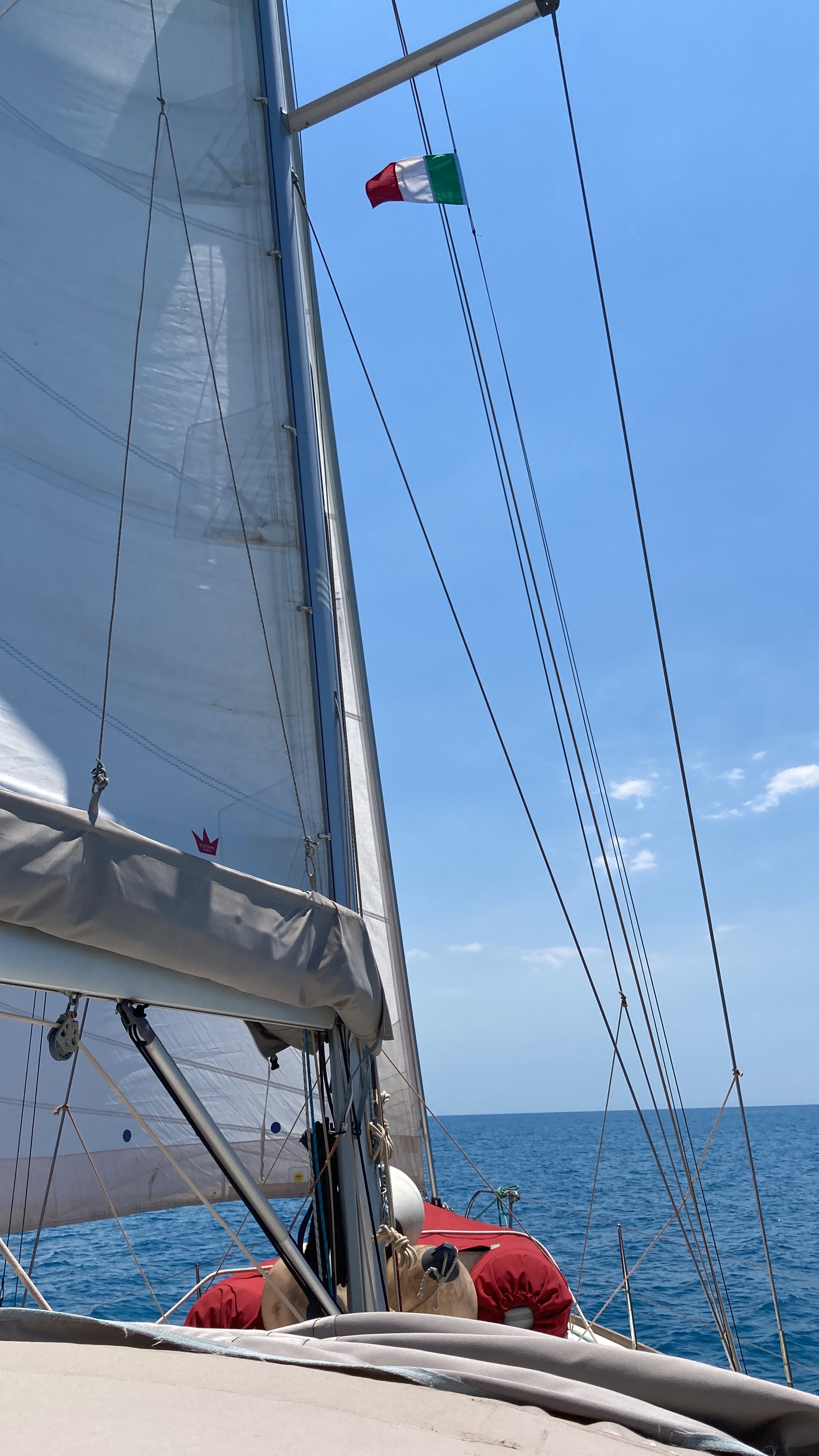 Wir starten Sonntag am Vormittag von Marina di Ragusa. Ziel ist irgendwo an der griechischen Westküste, wo wir jederzeit auf Sand den Anker fallen lassen können. Wenig Wind und ein komisches „Klinseln“ beim Motor verschafft uns schon nach wenigen Stunden die erste Reparatur – wir tauschen den Keilriemen und müssen dazu die Pantry „abbauen“.