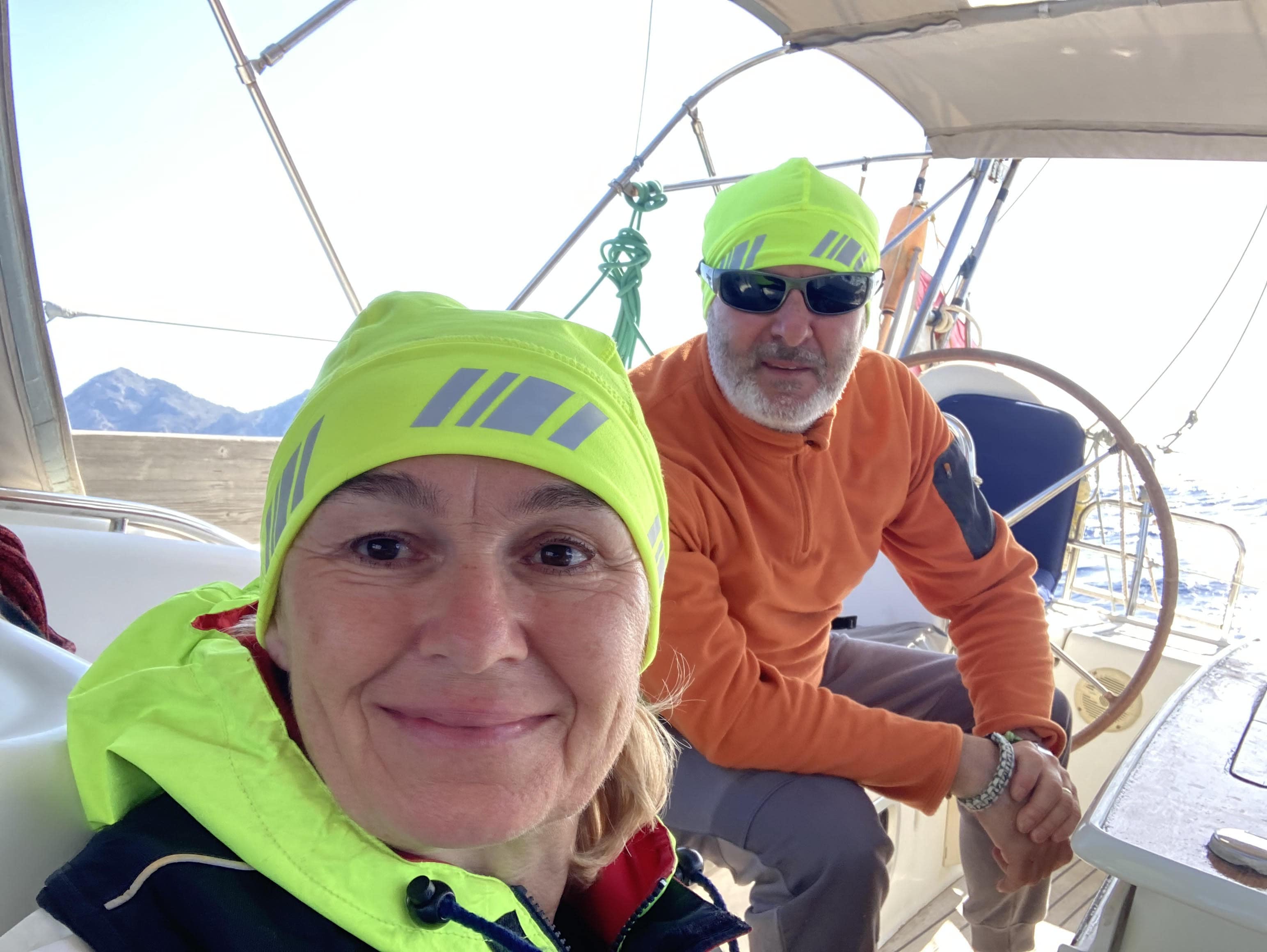 Prognosegemäß dreht der Mitte und wird westlicher. Wie gut, dass wir im ersten Drittel der Passage an Höhe gewinnen konnten, mit dem neuen Kurs steuern wir nun direkt die Insel an. Auf halber Strecke lässt der Wind nach, wir reffen aus, um keine 30 Minuten später schon wieder einzureffen.