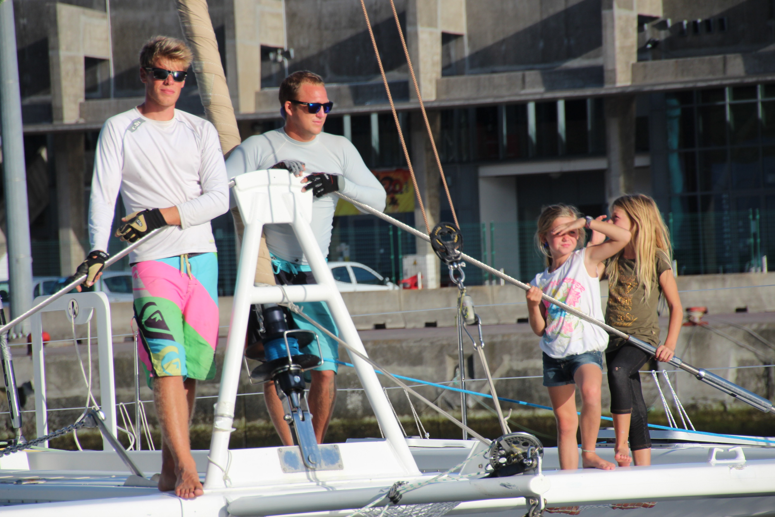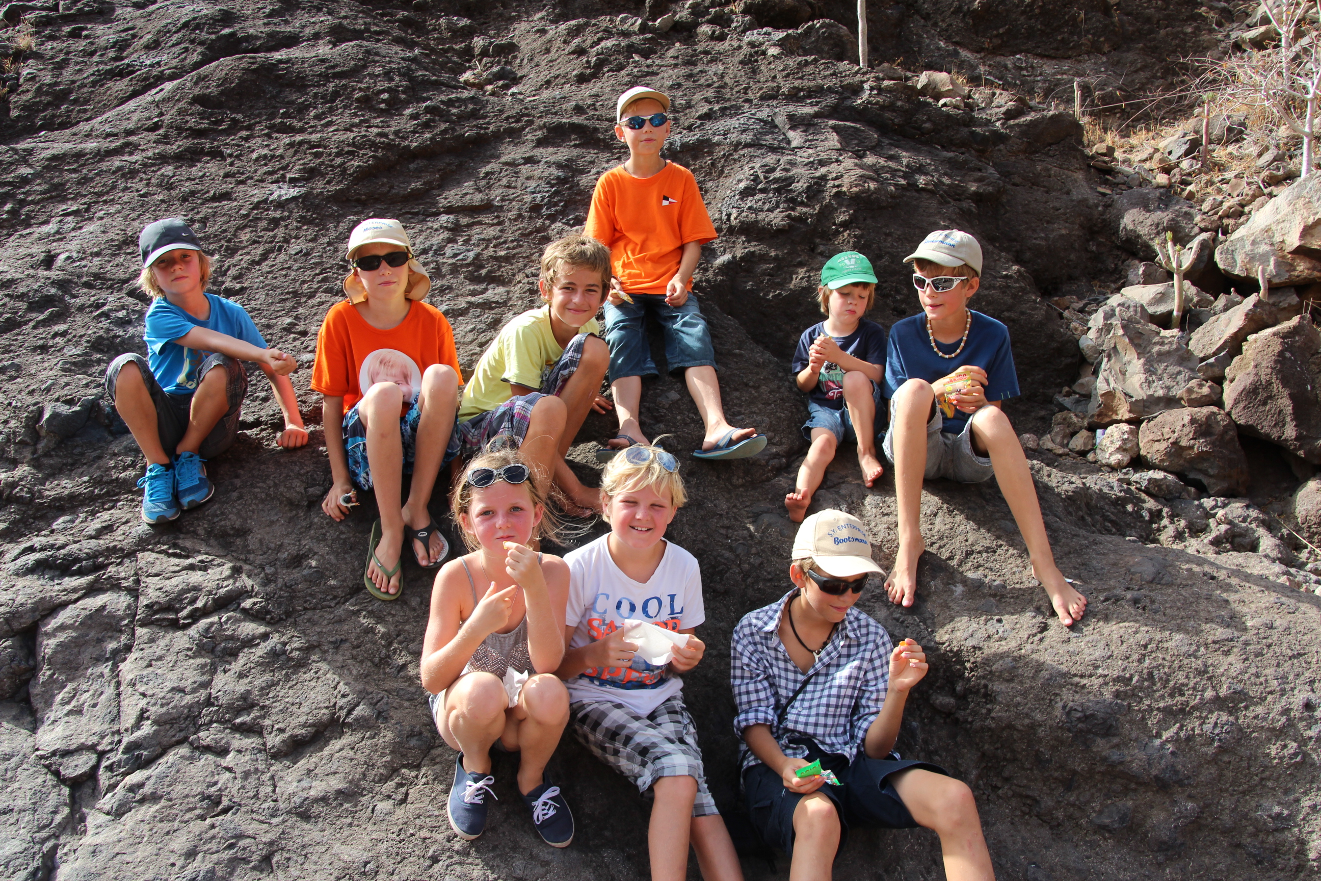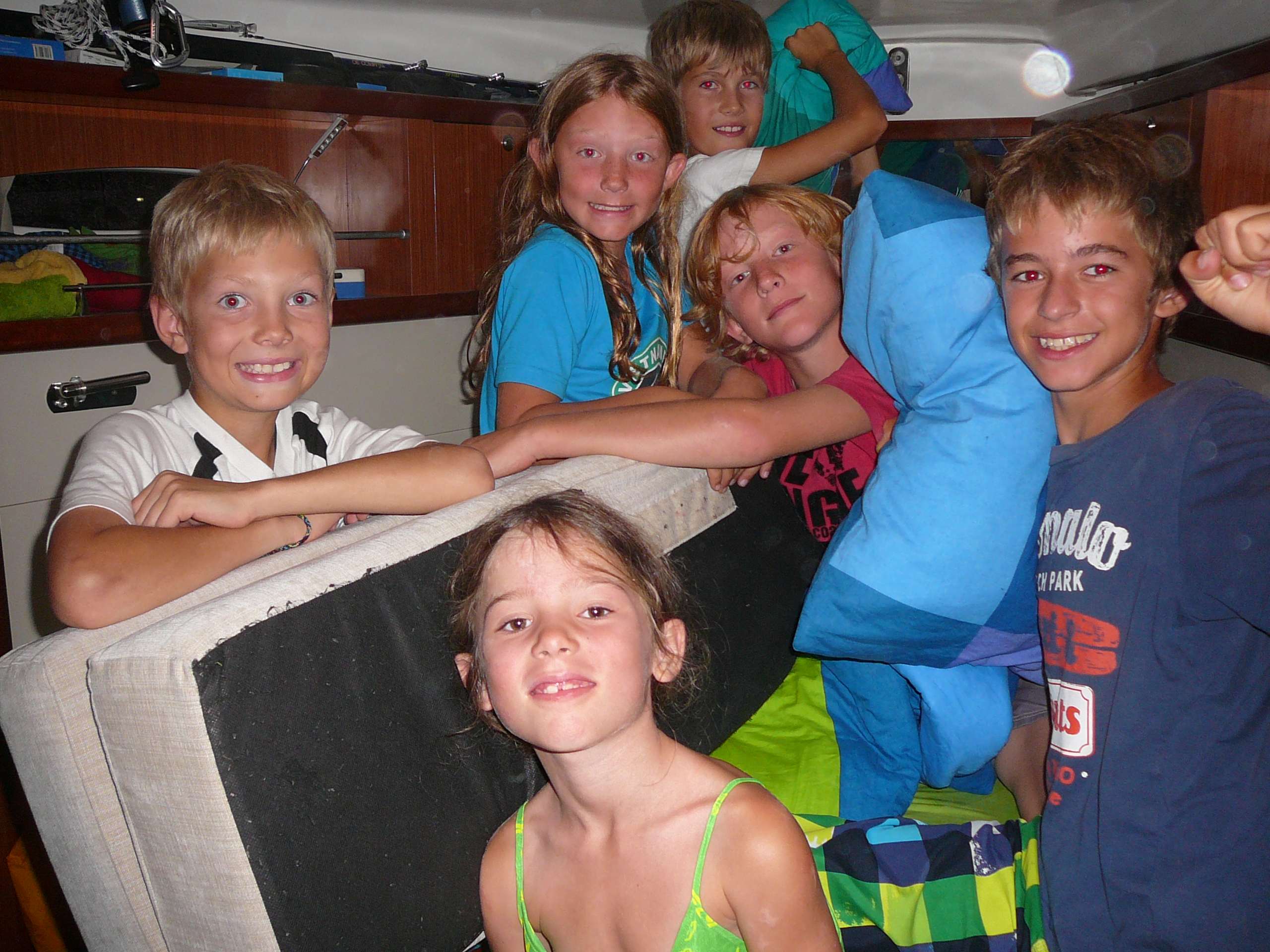 SY FILAO II (France): Cecilie, Julian, Zacharie (11), Eve (9) und Kim (6) (die drei in der Mitte mit Richard, Georg und Florian)