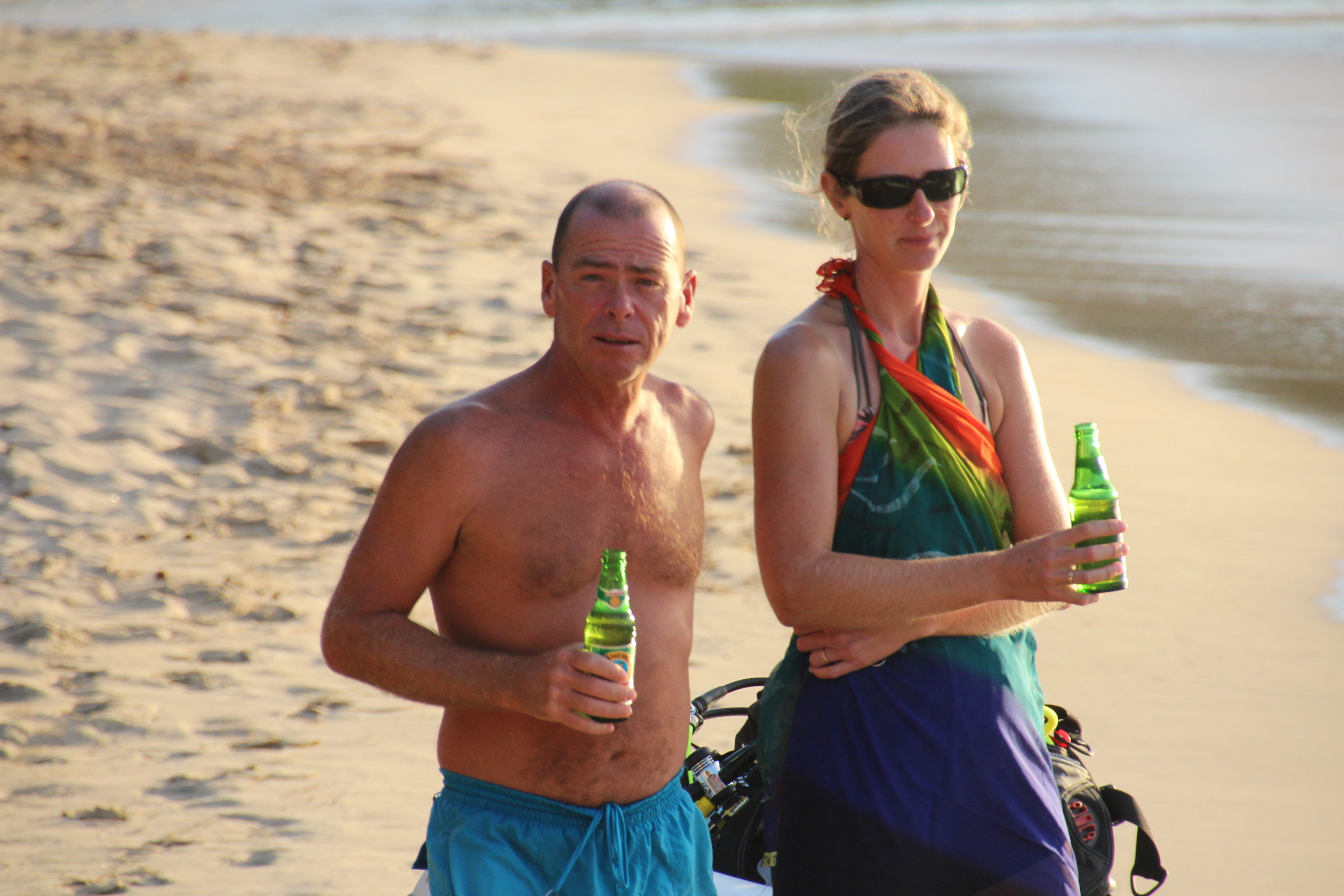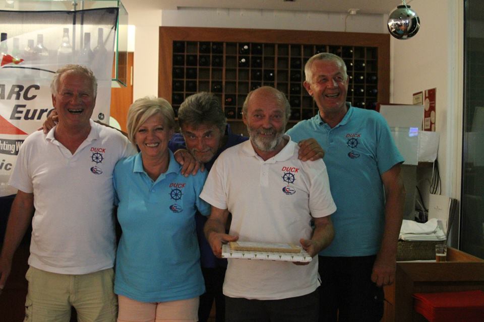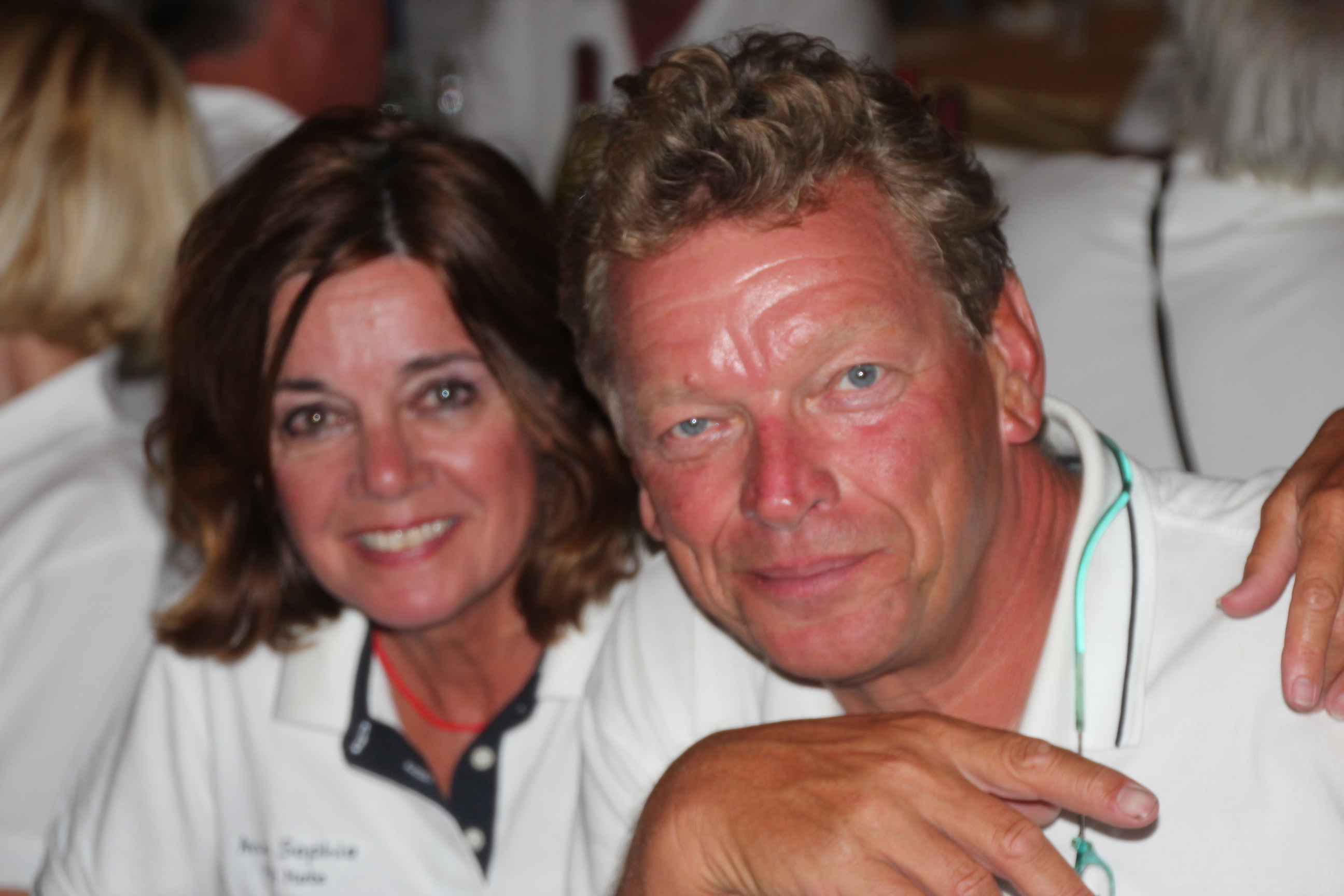SY BLUE DOLPHIN (UK): Carol and Mike (in der Mitte des Bildes anlässlich Mikes 65. Geburtstages)